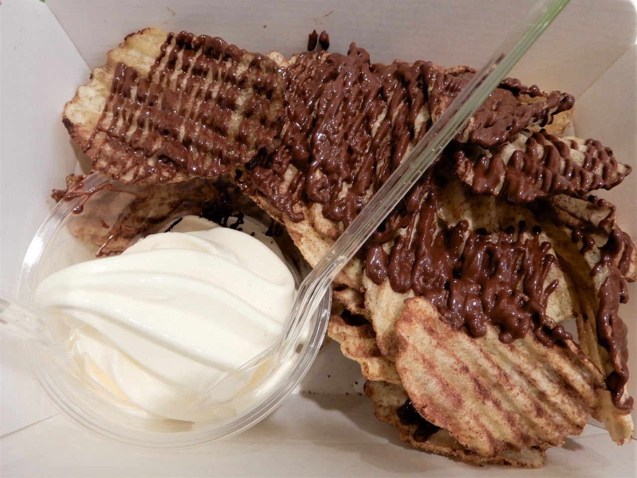 カルビーショップですが、揚げたてのポテトチップスが食べられます。