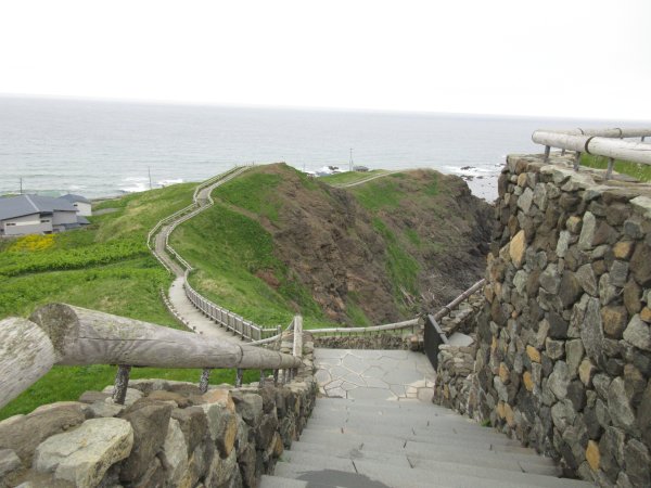 襟裳岬をナビで設定し、地図上でその先端まで行きたいと思っていました。風の館、灯台、展望台と一通り回った後に、最後の楽しみを残していました。ところが、先端に通じる通路に来ると、強風で一歩たりとも進めません。荷物で片手が塞がっていても、手すりを伝って行けばなんとかなると思っても、無理でした。先端は晴れているのに途中の小路は曇っているようにも思えます。畏怖を感じその場所を後にすると、無風で平穏さを感じました。