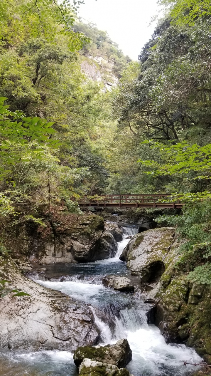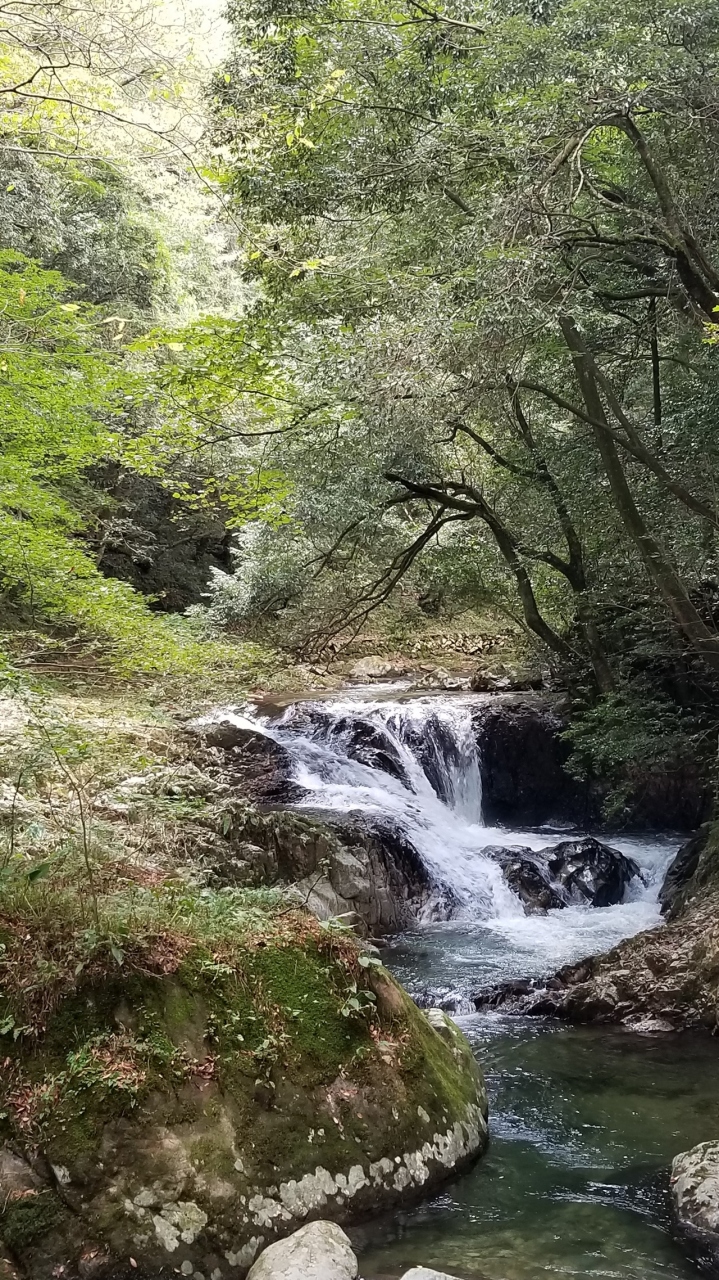 上流に位置する八潮滝は、二段の美しい滝で、しばし見入ってしまいます。