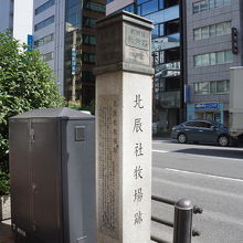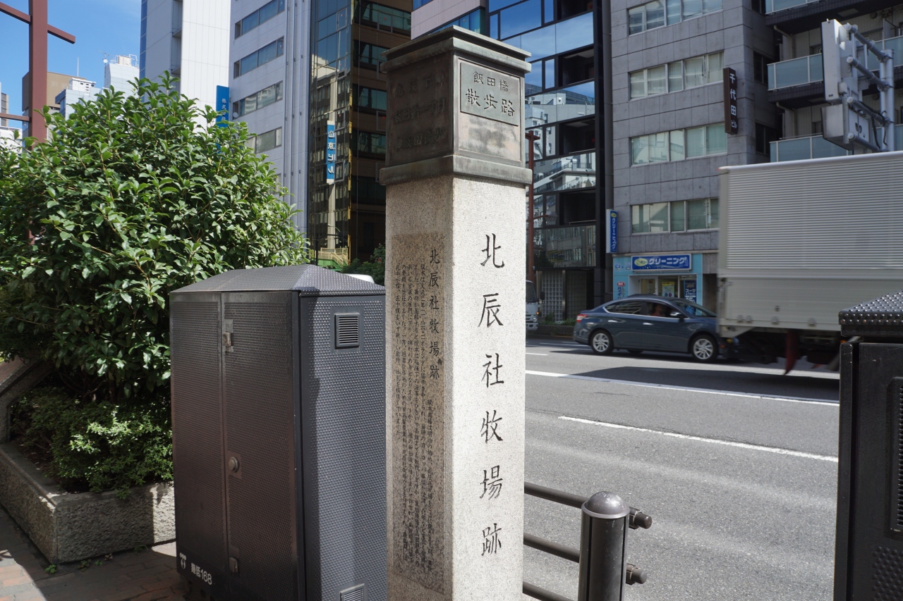 北辰社牧場跡碑は、飯田橋駅近くの目白通り沿いに建つ標柱の一つ。