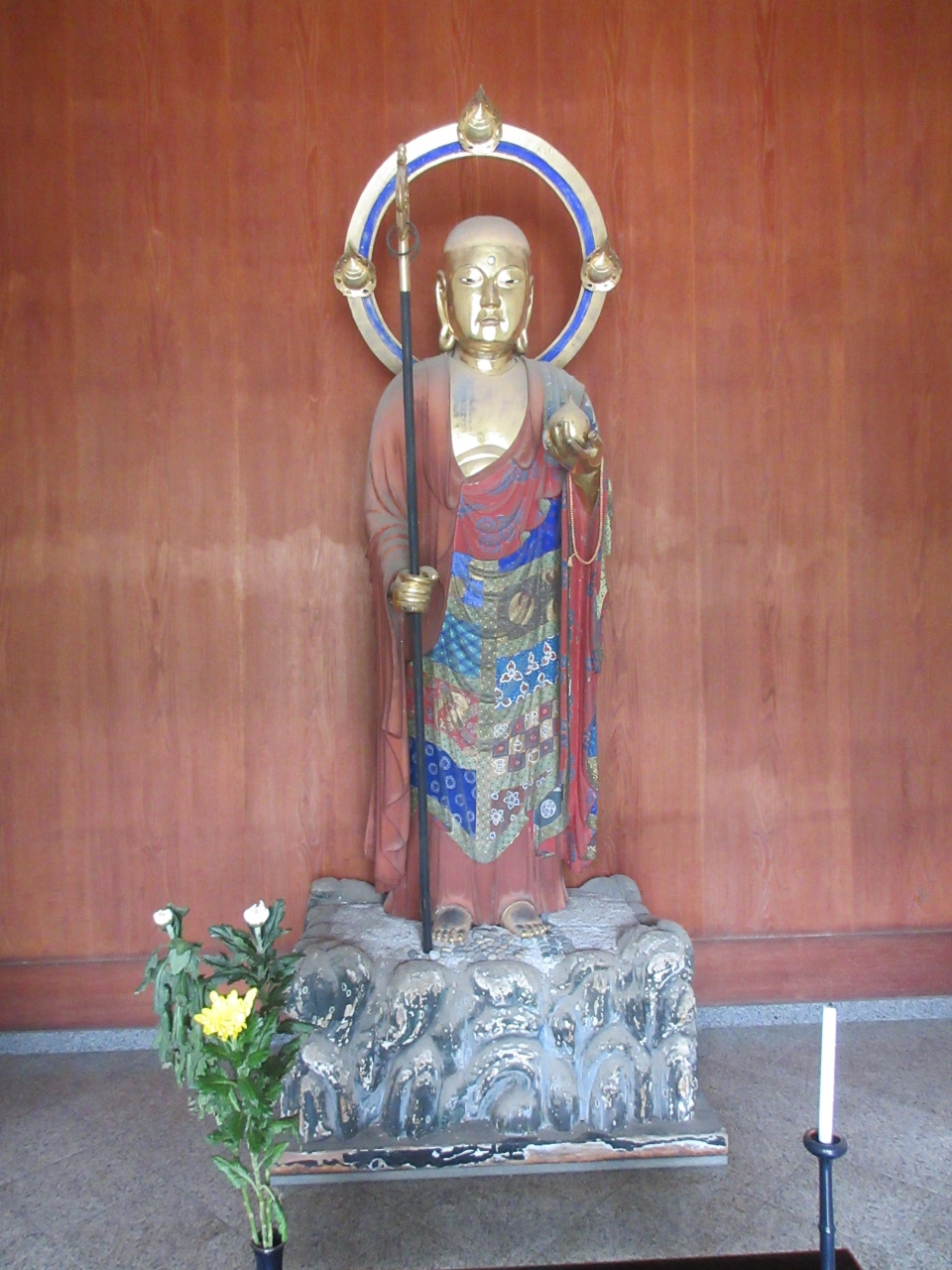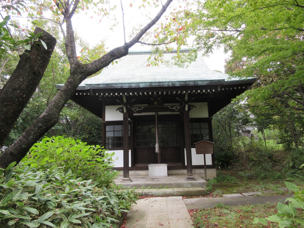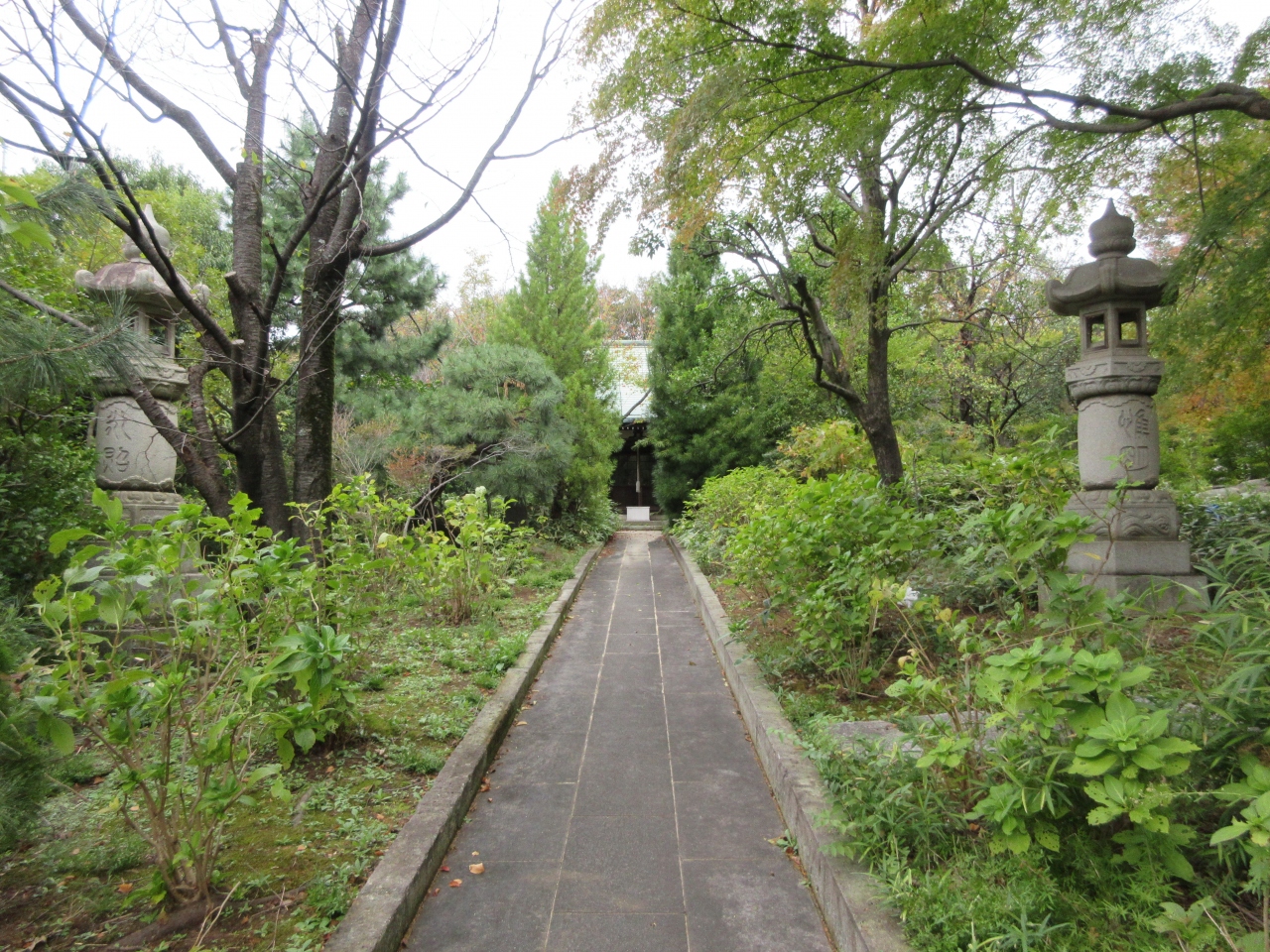等々力駅から目黒通りを北へ5分ほど行ったところにある真言宗寺院です。鉄筋コンクリート造りの寺院らしいすっきりとした本堂と庫裏です。本堂手前に色鮮やかで大きな一言地蔵が祀られています。境内の松など植木は手入れされていて本堂と共に静かな雰囲気を造っています。特徴は本堂裏に広がる墓地です。通り向かいの玉川神社社殿横に草木が茂る緑地帯があり、その中に満願寺の地蔵堂が建っています。参詣者が少ないようで手入れされていませんが、茂みの中に小さな石仏が集められていて、ガラス戸から祀られている地蔵尊を見ることができます。忘れられているような一画で、昔の境内はもっと広かったことが想像できます。きれいな一言地蔵と地蔵堂内の素朴な地蔵がみどころです。