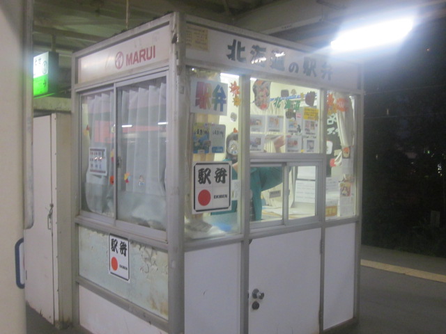 駅弁の製造元自体が減少し続けている現在の北海道において、更にホームで駅弁を買うとなると、現状では殆ど思い浮かべられないのですが、そんな中、細々とホーム営業を続けている貴重な店舗がこちらです。新千歳空港に到着した(を出発する)、道東・道南方面に向かう(から来た)観光客が乗り換える需要があるために、細々と生き長らえてきた印象のある店舗ですが、遅い時間に来るとまず営業していません。今回は夕方17時過ぎの立ち寄りでしたが、最後の一つが売れ残っていて、それを買うことに成功。自分が購入した所でお店が閉店となり、お店の方が忙しそうに閉店準備をしている光景も楽しめ(?)ました。