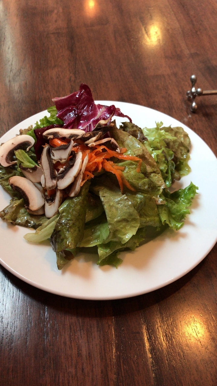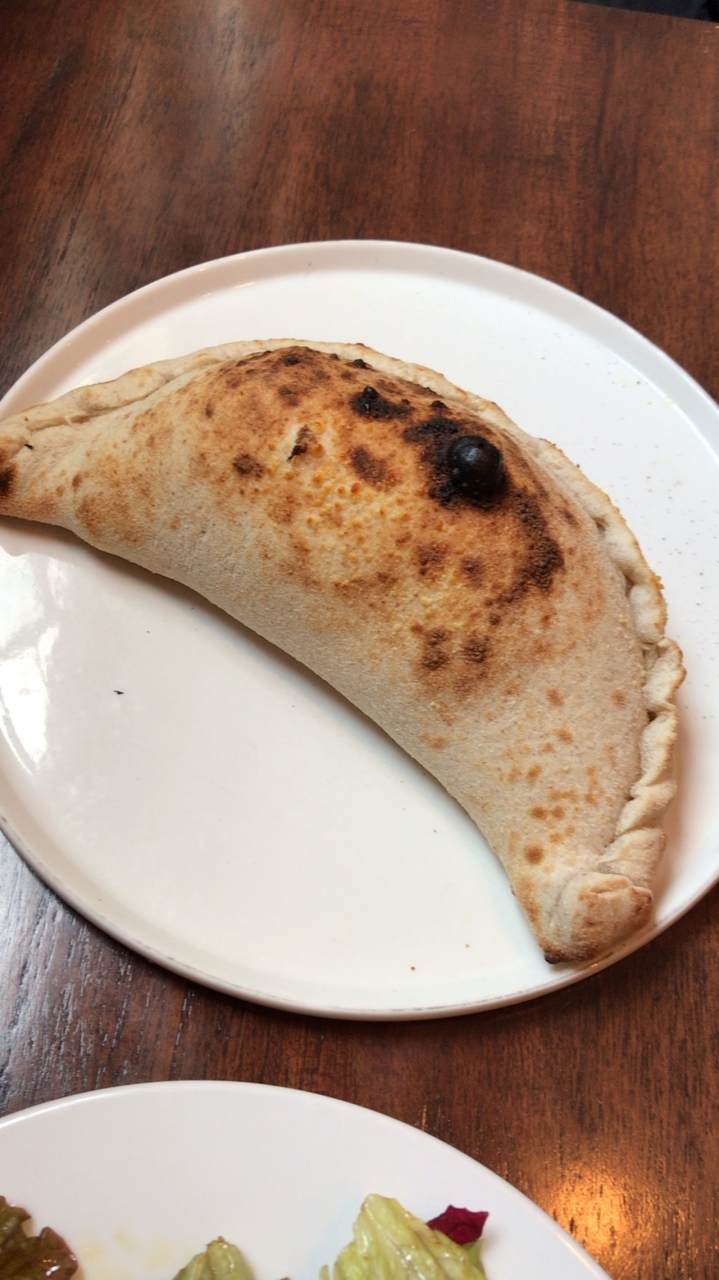 都立大駅から徒歩3分ほど。一階はジェラート屋さんで、二階がレストランになっています。ランチはサラダとピザかパスタとドリンクで950円とお得です。カルツォーネは具がたっぷり入っていて、中からトロトロのチーズがとろけ出してきて、かなり美味しいです。