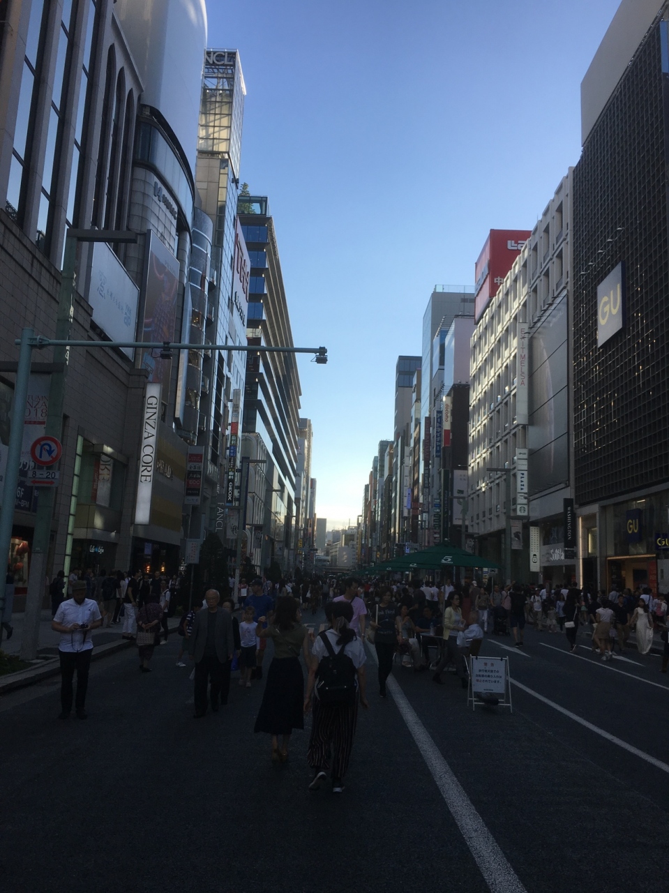 銀座中央通りに観光にやって来ました!今日はなぜかホコ天になってたくさんの人たちが道の真ん中を歩いていました!周りにはたくさんの高級ブティックやお店があって見ているだけでも楽しくなります!東京に来たら一度は銀座観光!