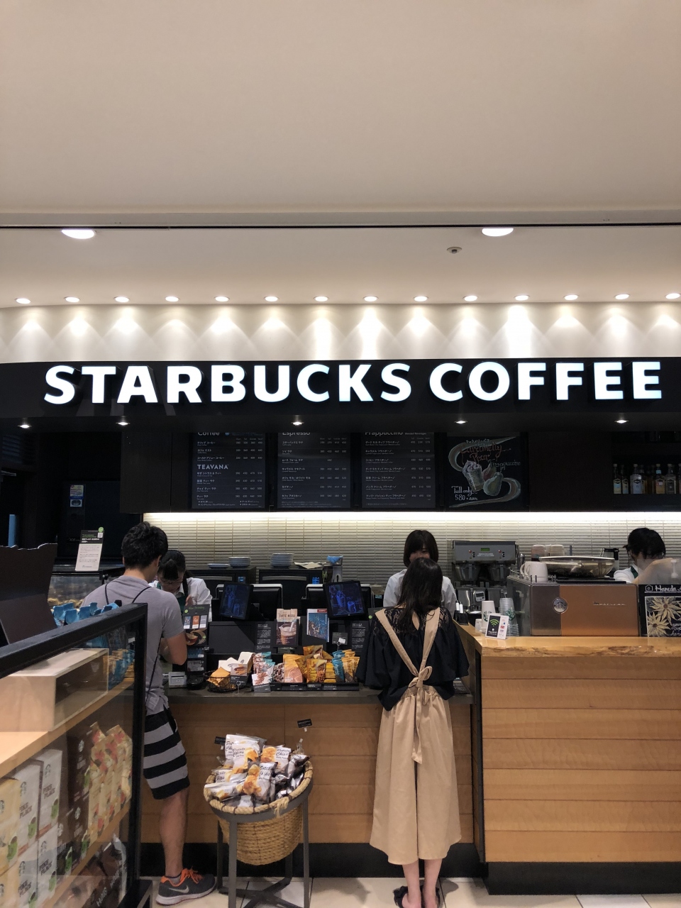 羽田空港第1ターミナルの、北ウイングと南ウイングの中間にあるスタバです。店の規模はそれほど大きくありませんが、テイクアウトの人が多いからか、それとも出発前の人が多いからか、1~2名であれば空席がある印象です。もっとも、簡単な椅子ですが。