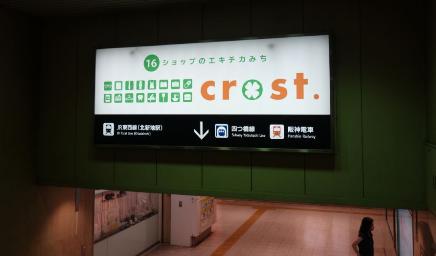 梅田大丸の地下向かいの通路は御堂筋線から四ツ橋西梅田に向かう途中にあるショッピングスペースですね。大阪ではあまり見ないマツモトキヨシもここにあります。つい最近までCROSTと言う名前がある事を知りませんでした。
