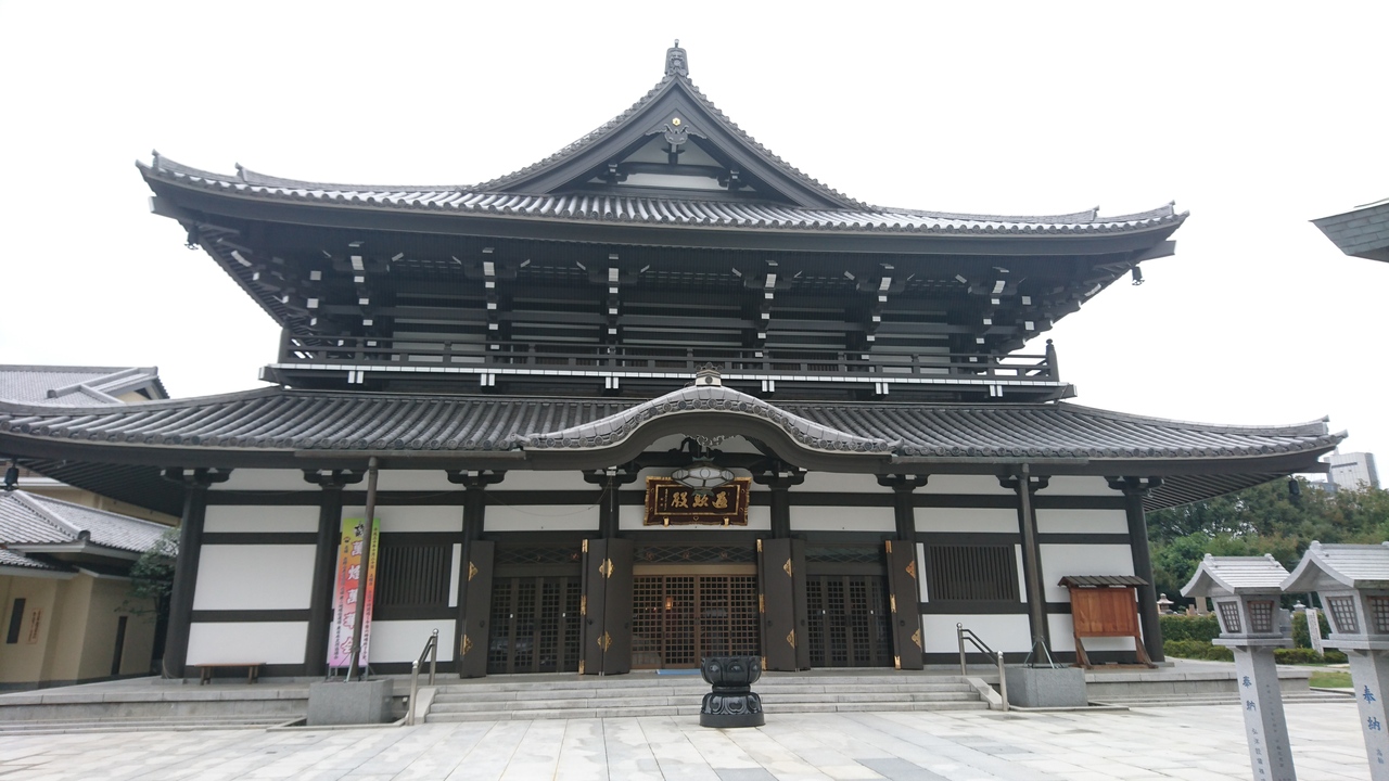 都営地下鉄浅草線高輪台駅の北東、徒歩7分の高野山真言宗の総本山金剛峰寺の別院に行きました。とても広い境内に、昭和63年建立の重量感のある本堂が建っており、高野山の東京本山として風格を感じさせました。仏さまと人、人と人を結ぶ場所として良縁祈願に参詣する人も多いそうです。