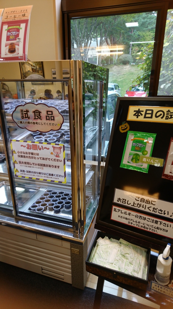 試食のゼリーは自分が訪れた時はコーヒー、オレンジがありました。弾力のあるゼリーです。