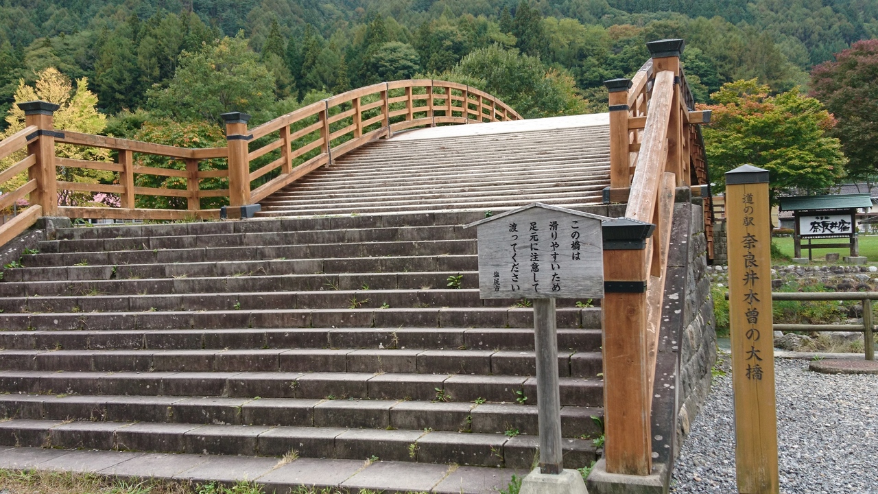 木曽の大橋は国道19号線を車で走っていてよく見える大きな木造の橋です。