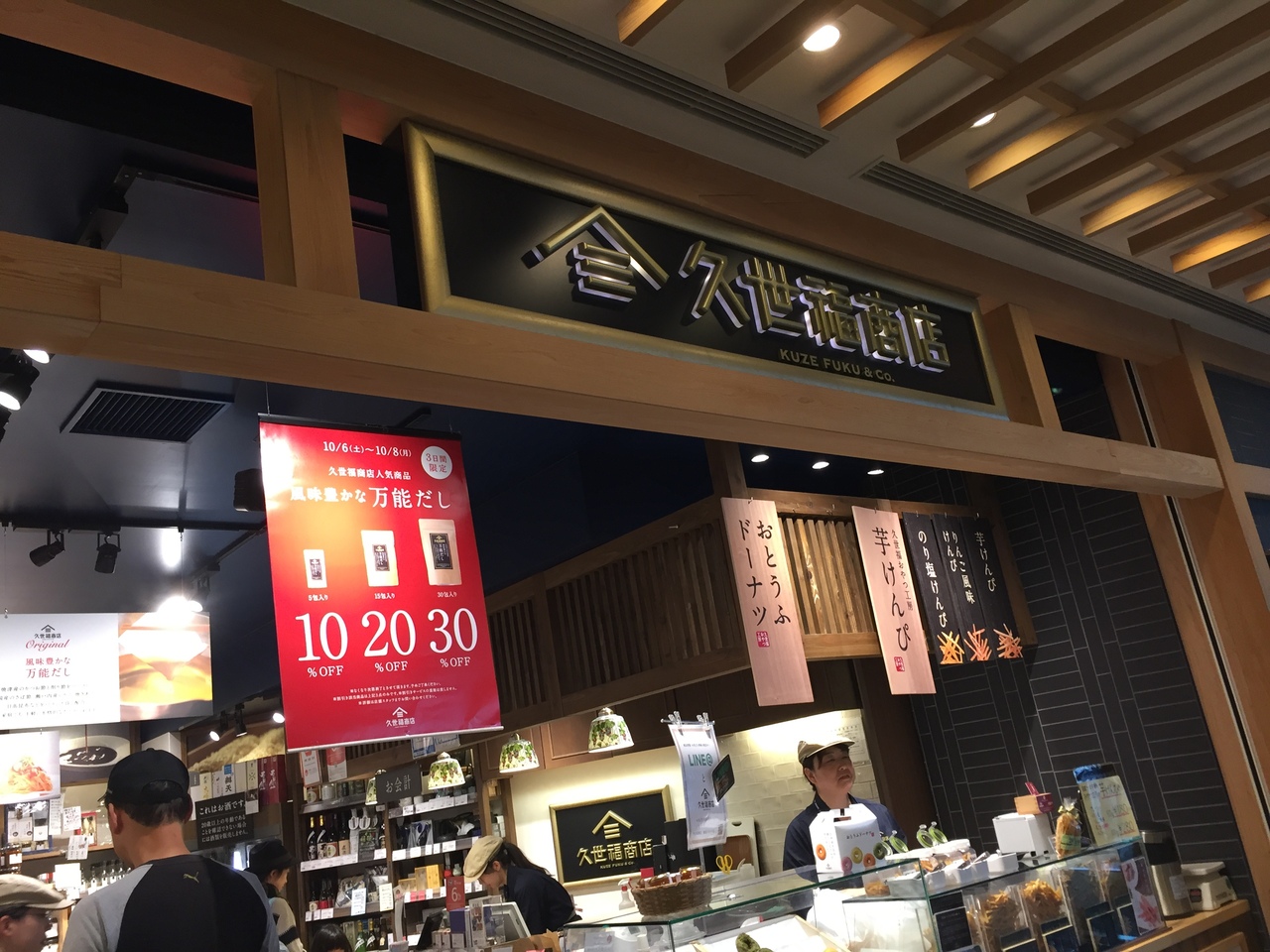 東京スカイツリータウン4階にある久世福商店さんです。お出汁の試飲をやっておられたので 頂きました。ちょうど10月6~8日限定でお出汁の割引もやっていたので、試飲が美味しかったので購入してみました。茅乃舎さんのお出汁を日頃使っているのですが、楽しみです。