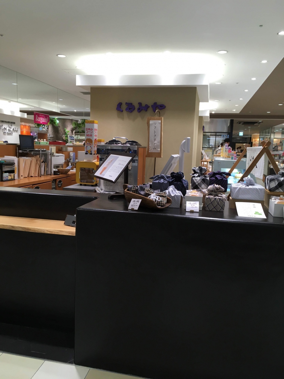 明石で洋菓子といえばくるみや。明石駅店は駅前にあるので、本店よりも、かなり買いやすい場所にあります。値段も割と良心的ですし、味もいい。もちろん、ケーキなどの持ち帰りもいいのですが、最近はソフトクリームもよく買うようになりました。