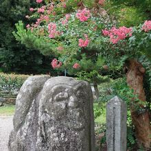 二面石は丁度綺麗な赤い花入咲く木の下にあり、とても良い感じ。飛鳥地方にある奇石の中でも1,2に好きな石像の一つです。橘寺に行ったら見逃せない奇石です。