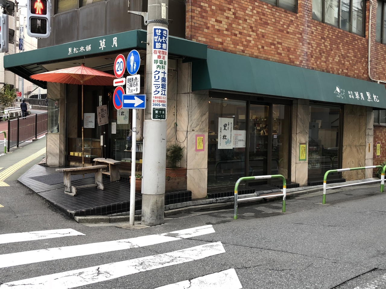 東十条駅南口から坂道を下った交差点角にある老舗和菓子店です。東十条駅を最近毎日使っていて、店内に客がいつも並んでいる草月が気になっていました。今回店に入ってみました。第15回全国菓子大博覧会金賞をとった黒松とロール型の大福と栗を購入しました。店頭に「本日黒松あります」と札が下がっているためか、ほとんどの客が黒松を数個や折り詰めで買っていきました。黒糖と蜂蜜を使った黒松(どら焼き)の生地はふんわりしっとりもっちりしていて粒あんを挟んだ一品です。1個税別120円はお得です。緑の豆が入っている餅で粒あんをくるんだ大福は珍しい形と餅の美味しさで気に入りました。大福は本日中にお召し上がりくださいと言われました。餅のきめ細かい柔らかさを味わえるのは当日だけだと納得しました。定番の黒松、最中、カステラ、羊羹の他に、季節の生菓子が数種類ありました。和菓子が好きな方に食べていただきたい品です。