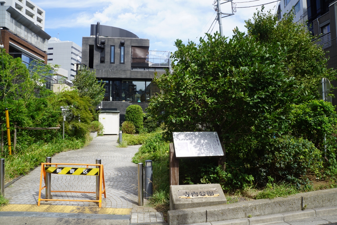 寺内公園は、神楽坂から兵庫横丁を抜けて一段低い場所に降りたところ。公園と言っても小さな空地みたいな感じで、一見すると観光の対象のようには見えません。