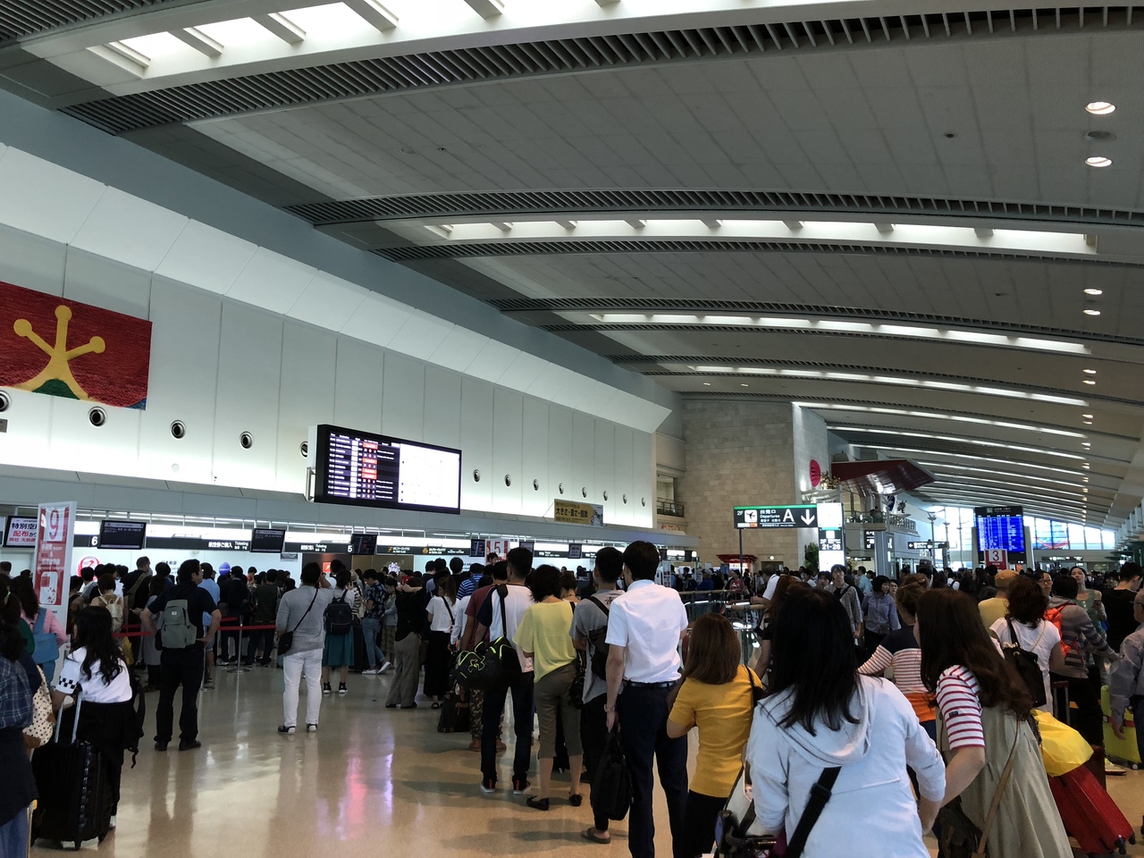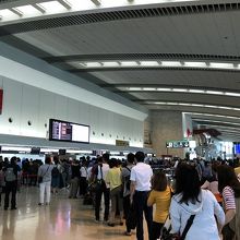 欠航便の振替に専用カウンターが出来ており、そこに大行列がなされていました。