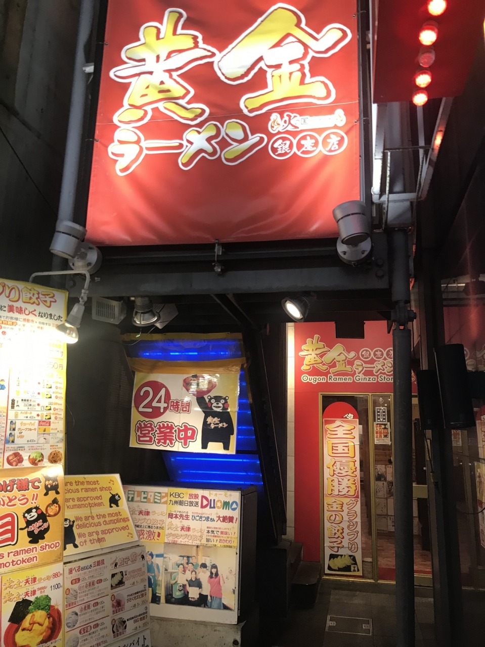熊本は銀座通りにある、黄金ラーメンです。豚骨スープのこってり熊本ラーメンのお店です。24時間営業しているので、週末遅くなっても行けちゃうので旅行中でも行けちゃいます。トッピングもコーンとかいろいろあります。