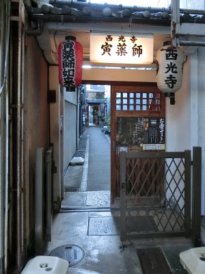新京極通り沿いにあるお寺です。本尊の隣に安置されている薬師如来像が弘法大師の作で、寅の日の寅の刻に完成したという言い伝えから寅薬師という通称名がつけられたとのことでした。本尊を差し置いて脇侍の方が有名になってしまうことからも弘法大師のネームバリューは今も昔も変わらないのだなと思いました。新京極通から見ると山門の奥に続く細い通路状の参道とその途中にある民家の前庭にあるような引き戸しか見えず、立ち入ってよいものか不安になりますが、お寺の方に声をかけると快く参拝させてくださいました。