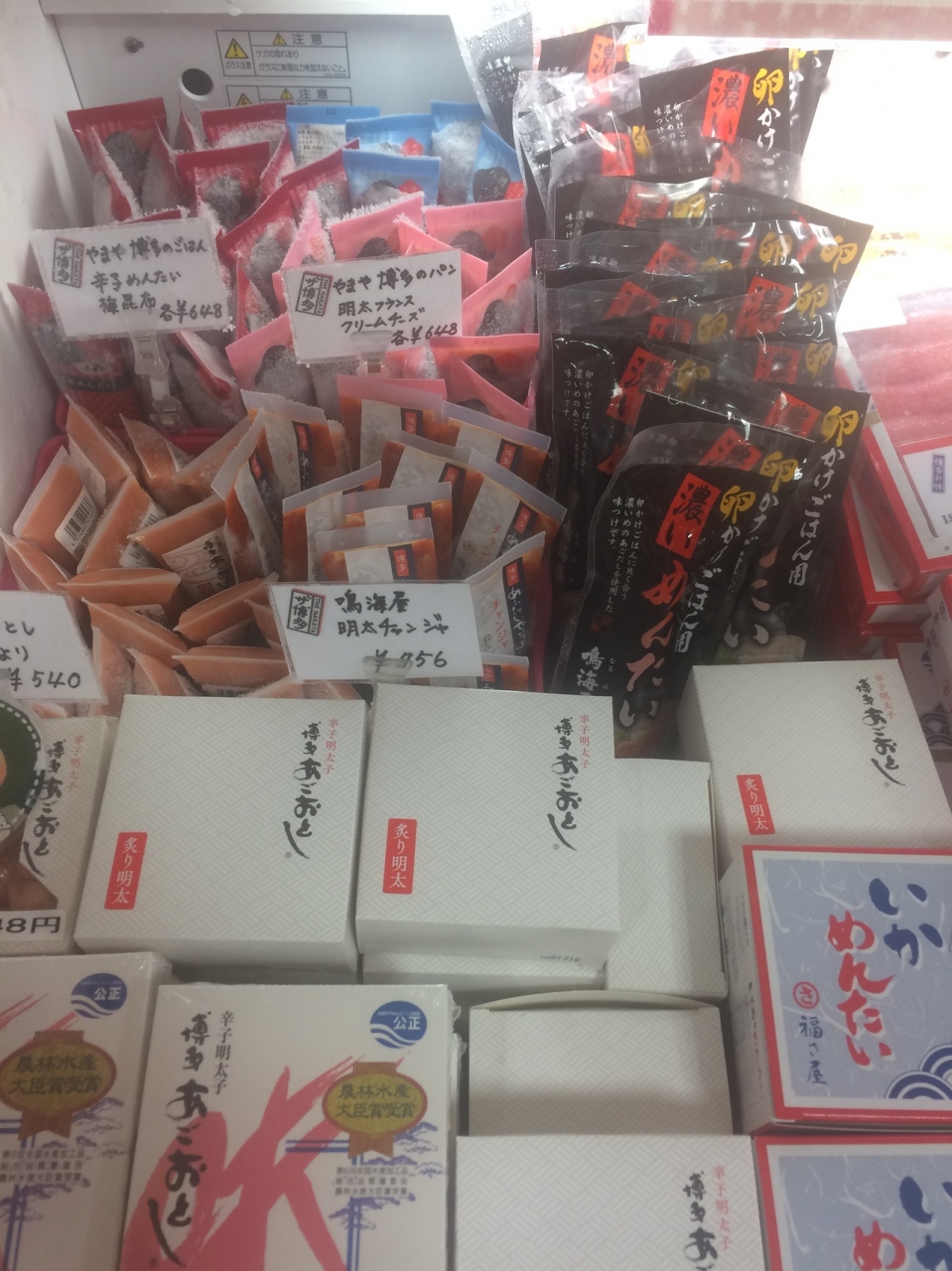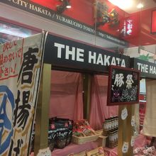 東京交通会館の地下1階の人通りが多いところにあります。店頭にはワゴンにも品が置いてありました。狭い店内でしたが所狭しと商品が並んでいました。やはり名物めんたいは何種類かあり、冷蔵コーナーで冷やしてありました。地ビールやグッズ商品もありました。思ったより博多土産がたくさんありました。