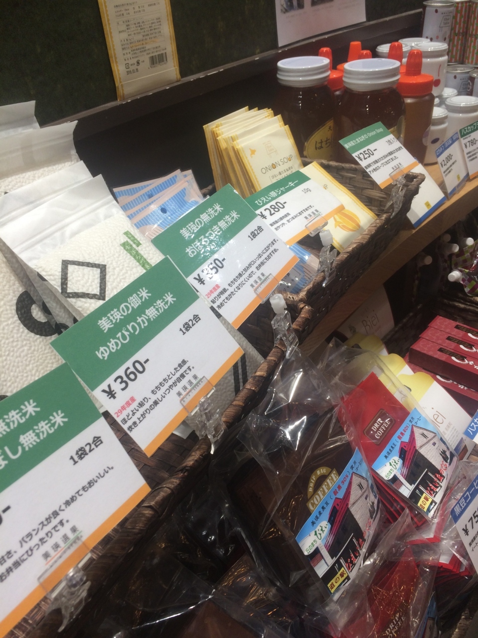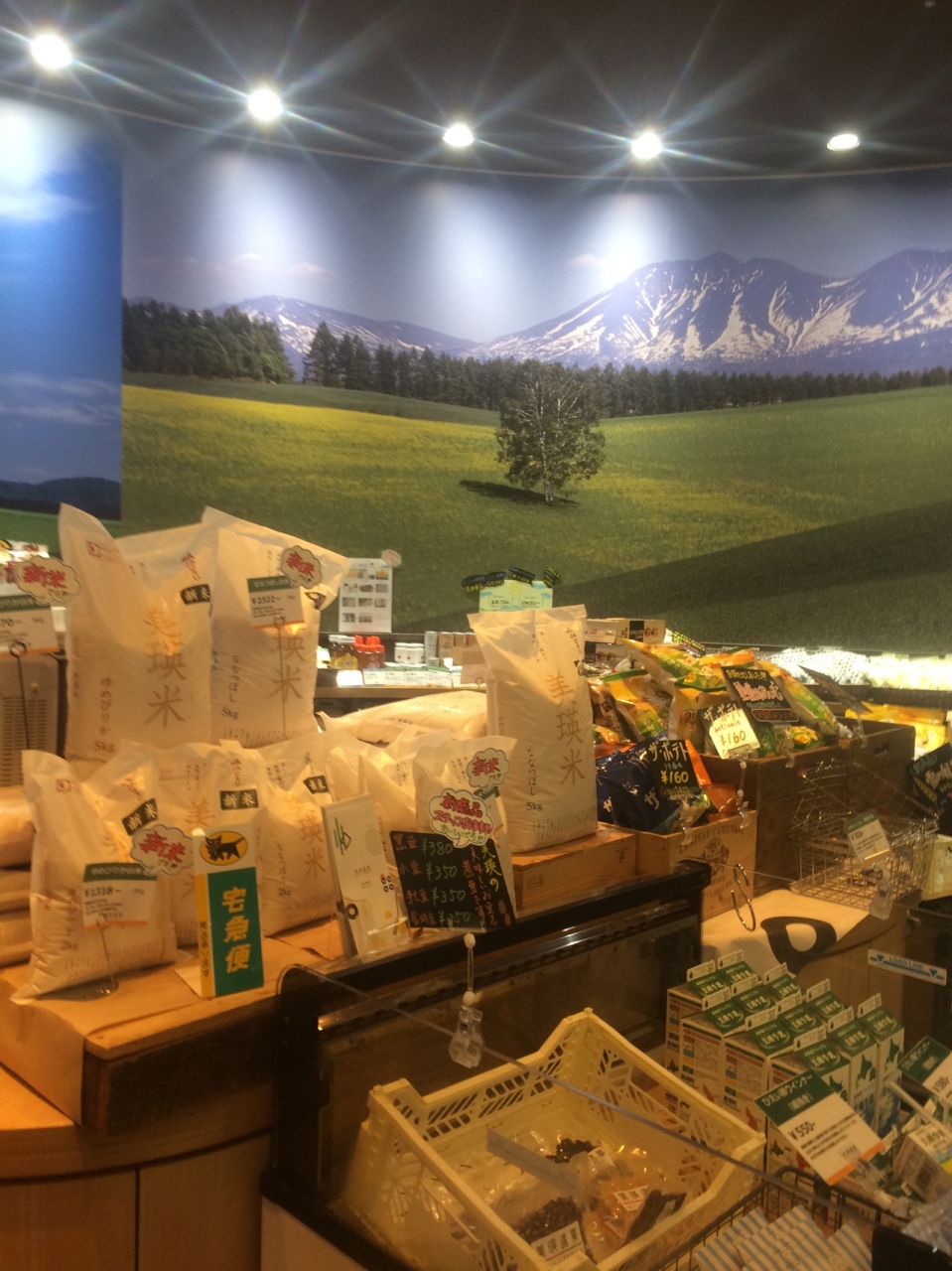 東京交通会館の地下のメイン通りではなく端にある通り沿いにあり、ドアがないので入りやすい店でした。美瑛の丘の写真が大きく飾ってありました。横長の店内でスナック菓子やお米も置いてありました。横には喫茶コーナーもあり併設してました。観光パンフレット等は少なめでした。
