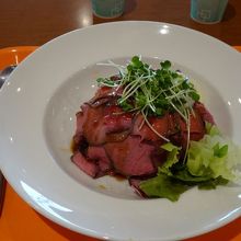 ローストビーフの肉は軟らかく、ソースとの相性もよく、ご飯の硬さも合って美味しかったです。