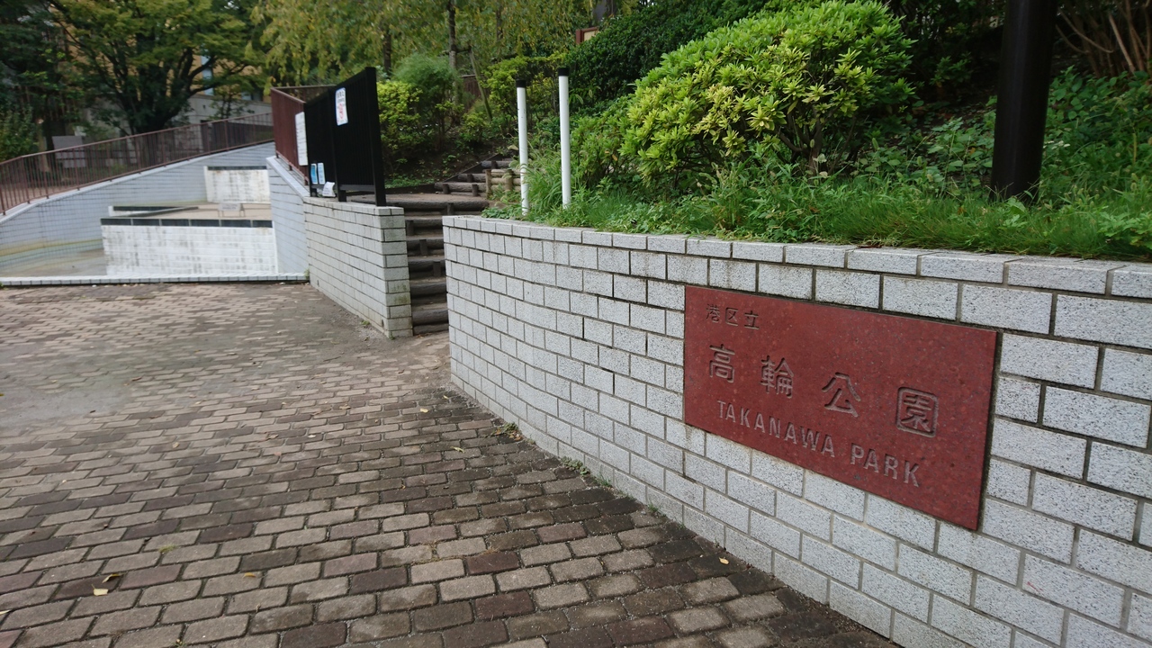 JR品川駅の高輪口から東禅寺に向かう途中にある高輪公園に立ち寄りました。緑がとても多くて静かな公園でした。公園の入口には水景施設があったり、遊具などもあるので、普段はたくさんの子供たちが遊ぶそうです。行った時は雨で人はいませんでしたが、色々な遊び方ができそうな公園でした。