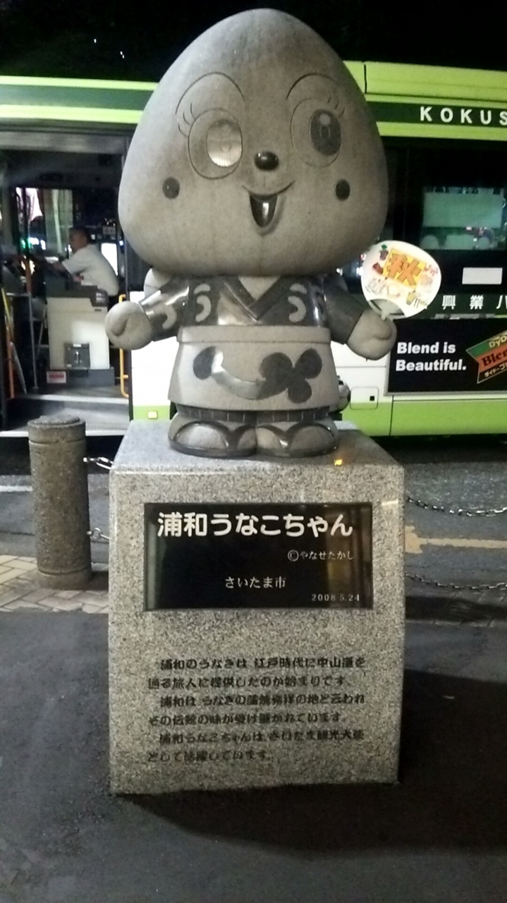 毎日、浦和駅を利用してます。浦和駅の西口のシンボルはサッカーの町をアピールする浦和レッズのモチーフが至るところにあることと、個人的にはうなこちゃんの像です。最近、朝晩は大分涼しくなりましたがうなこちゃんはまだ、うちわを持たされてます。