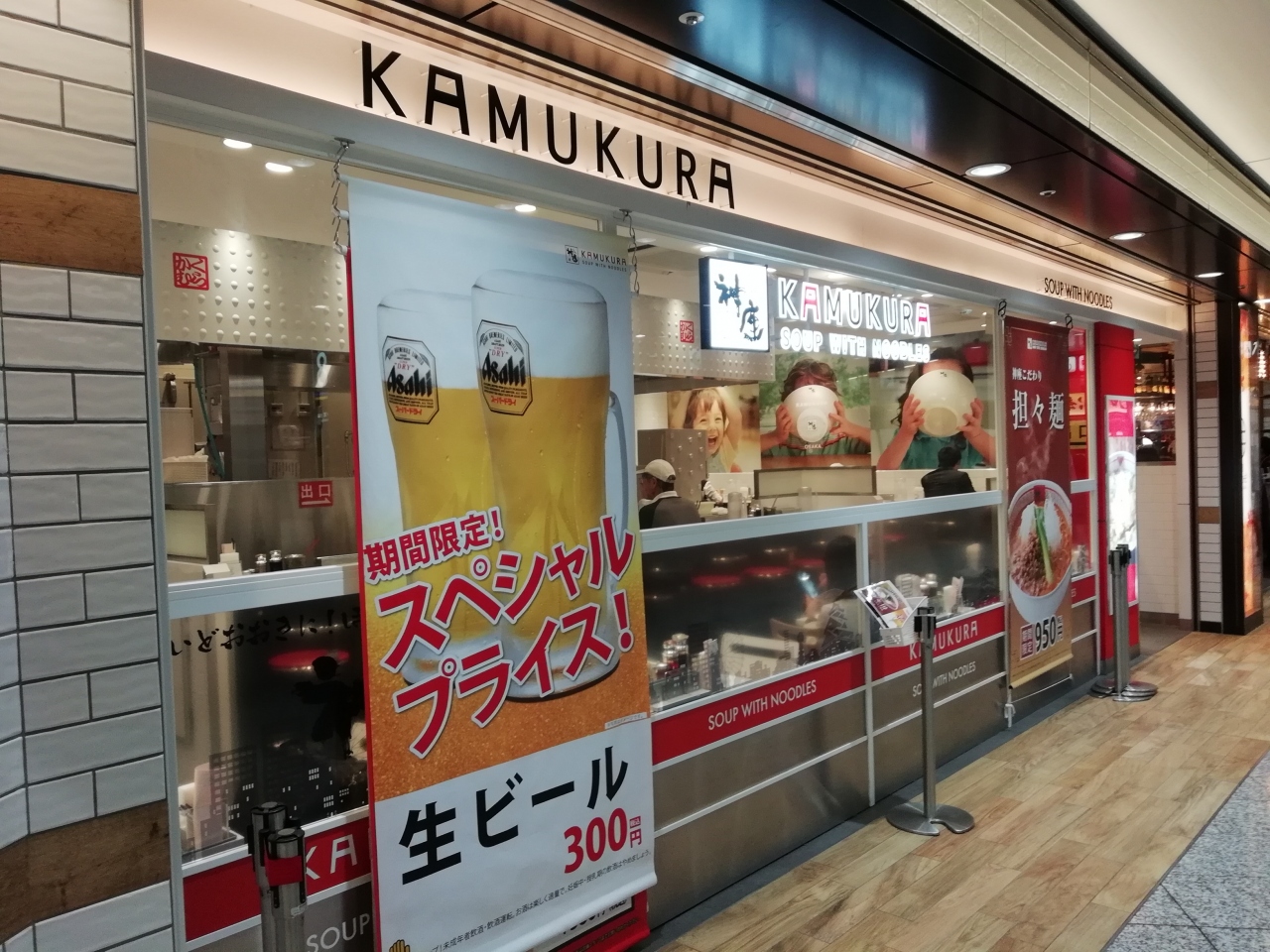 JR新大阪駅の駅構内にあるラーメン屋。期間限定の生ビール300円に誘われて入店。昼抜きで腹も空いていたので食事を兼ねて。ガッツリならばオススメはセットメニュー、単品の「唐揚げ」が350円なのに対して、ライスが付いて380円で断然お得です、是非。