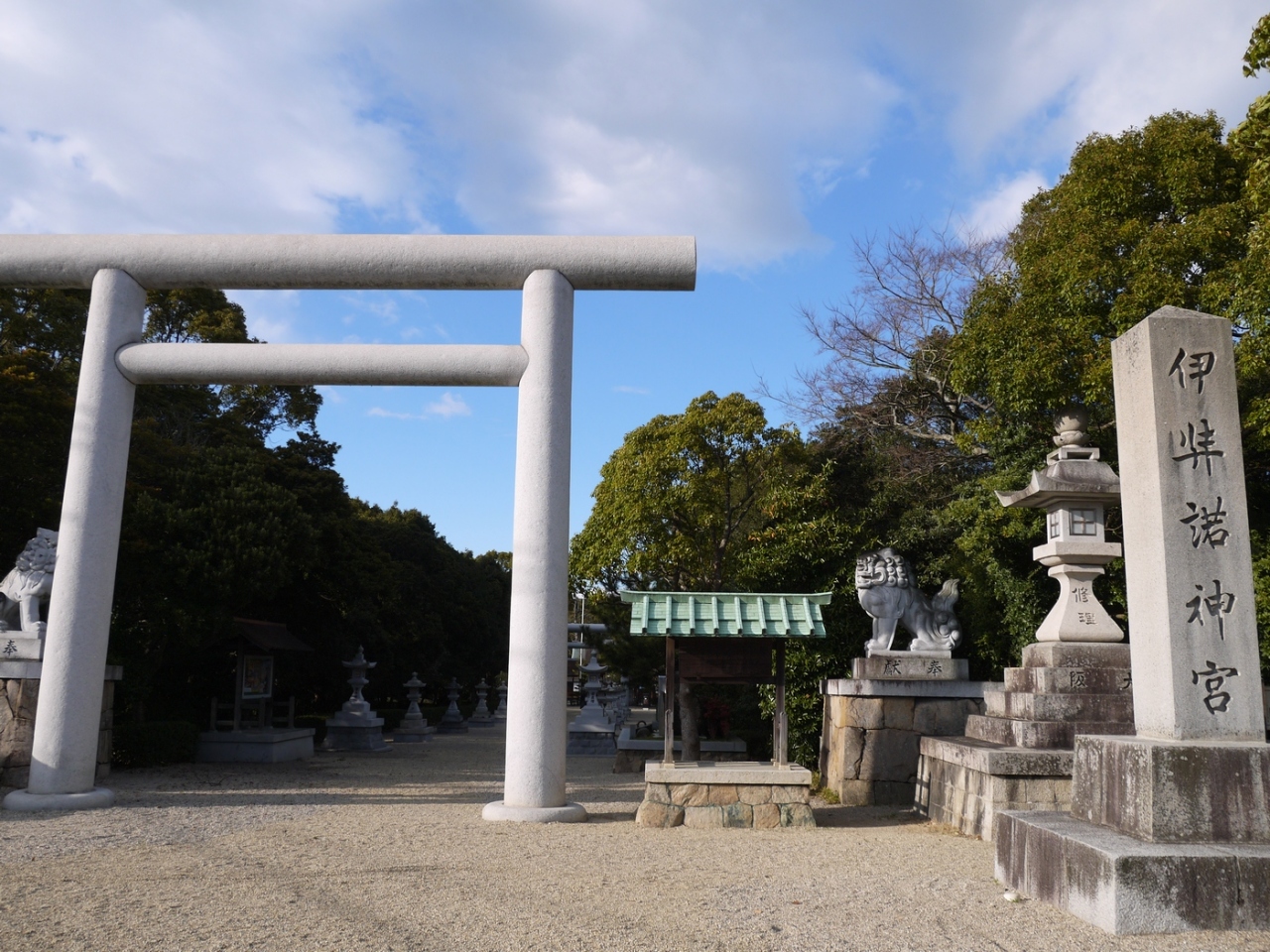 伊弉諾神宮のある淡路島が国生み神話でできた島なので、島内には神話にまつわる由緒が多々あります。中でも伊弉諾神宮は、伊弉諾尊伊弉冉尊の2神をお祀りしている別格です。境内は鬱蒼とした木々に覆われて、古さと風格を感じさせます。夫婦樟の古木も見ごたえありです。国生みや夫婦円満のグッズもご利益がありそうです。