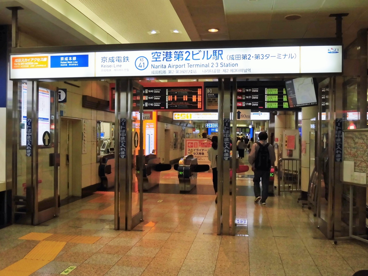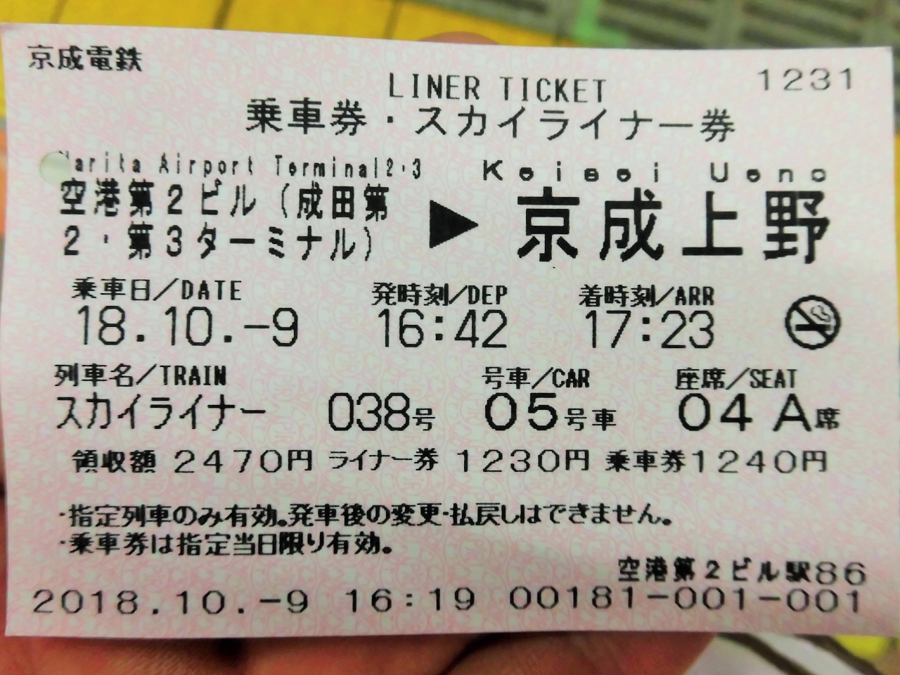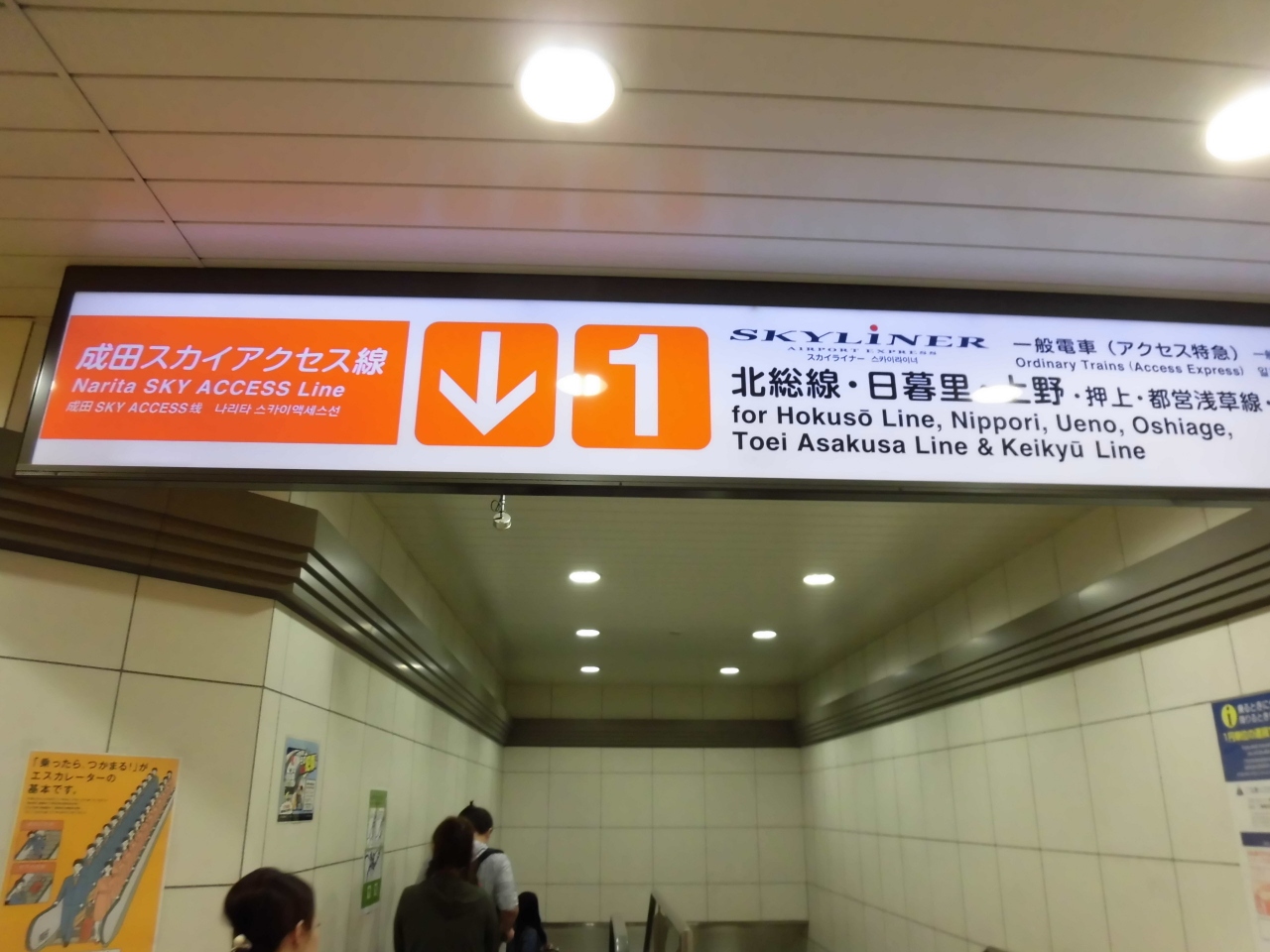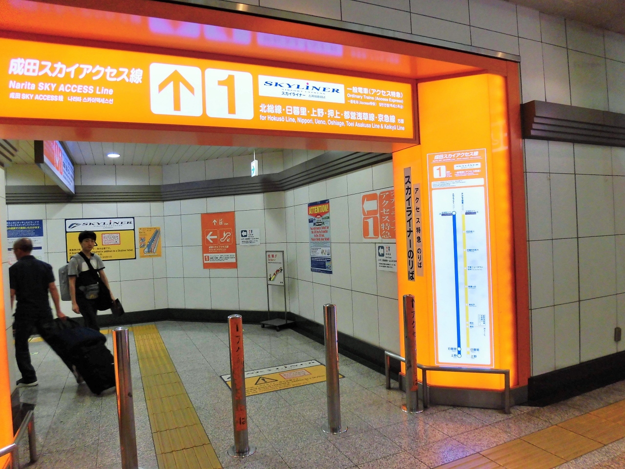 成田空港の出口でバスチケット売り場のすぐ横に京成スカイライナーのチケット売り場もあり、ホームまでの案内板もあって、迷わずに乗れました。