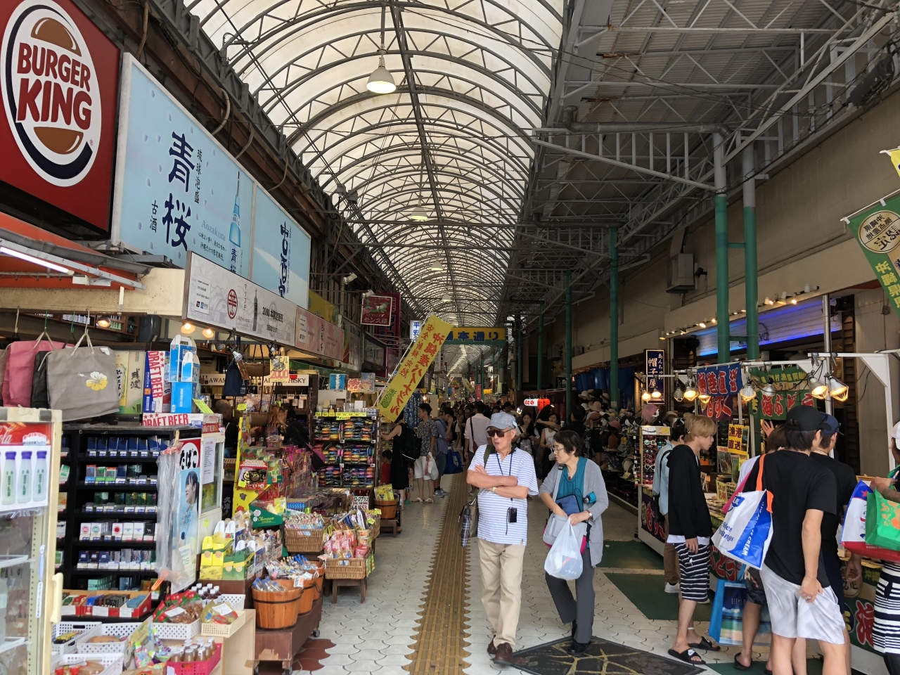 国際通りの中央付近から牧志公設市場まではこの市場本通り商店街で結ばれています。