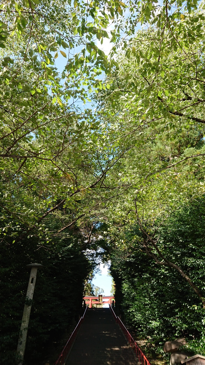 ガイドブックでみつけて訪れた八幡宮。到着して参道の先に続く長い階段にちょっと冷や汗が出ましたが(笑) ゆっくりと話しながら何とか登りきることが出来ました。到着した先にも立派な鳥居が続きます。参道が広く両脇は高い木に囲まれていて、格の高さを感じます。