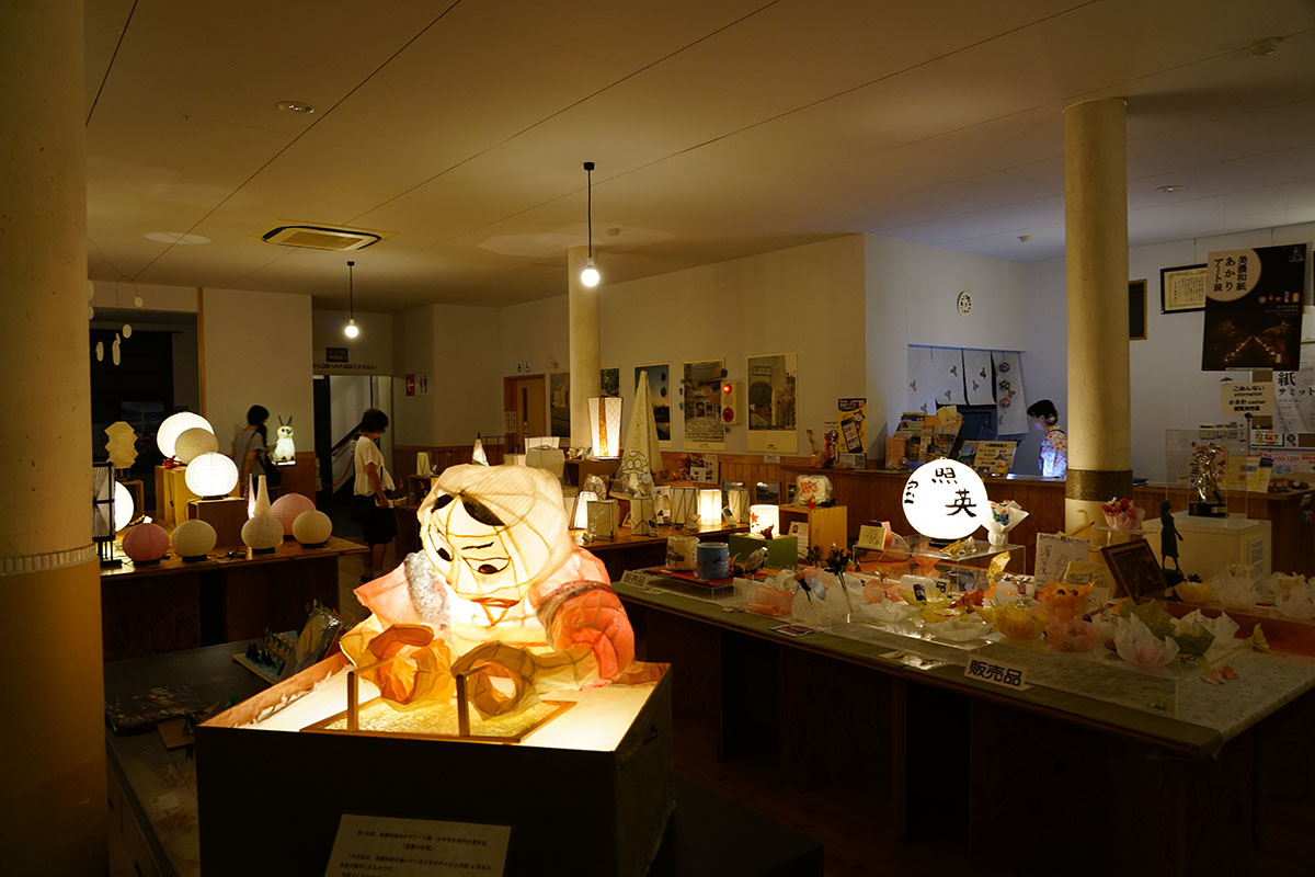 2階が美濃和紙でつくられたあかり工芸品の展示室、1階は美濃和紙を中心とした地元の工芸品、お土産の販売店になっています。メインの通りから少し入ったところにありますので,散策マップで確認して行かれた方が良いと思います。