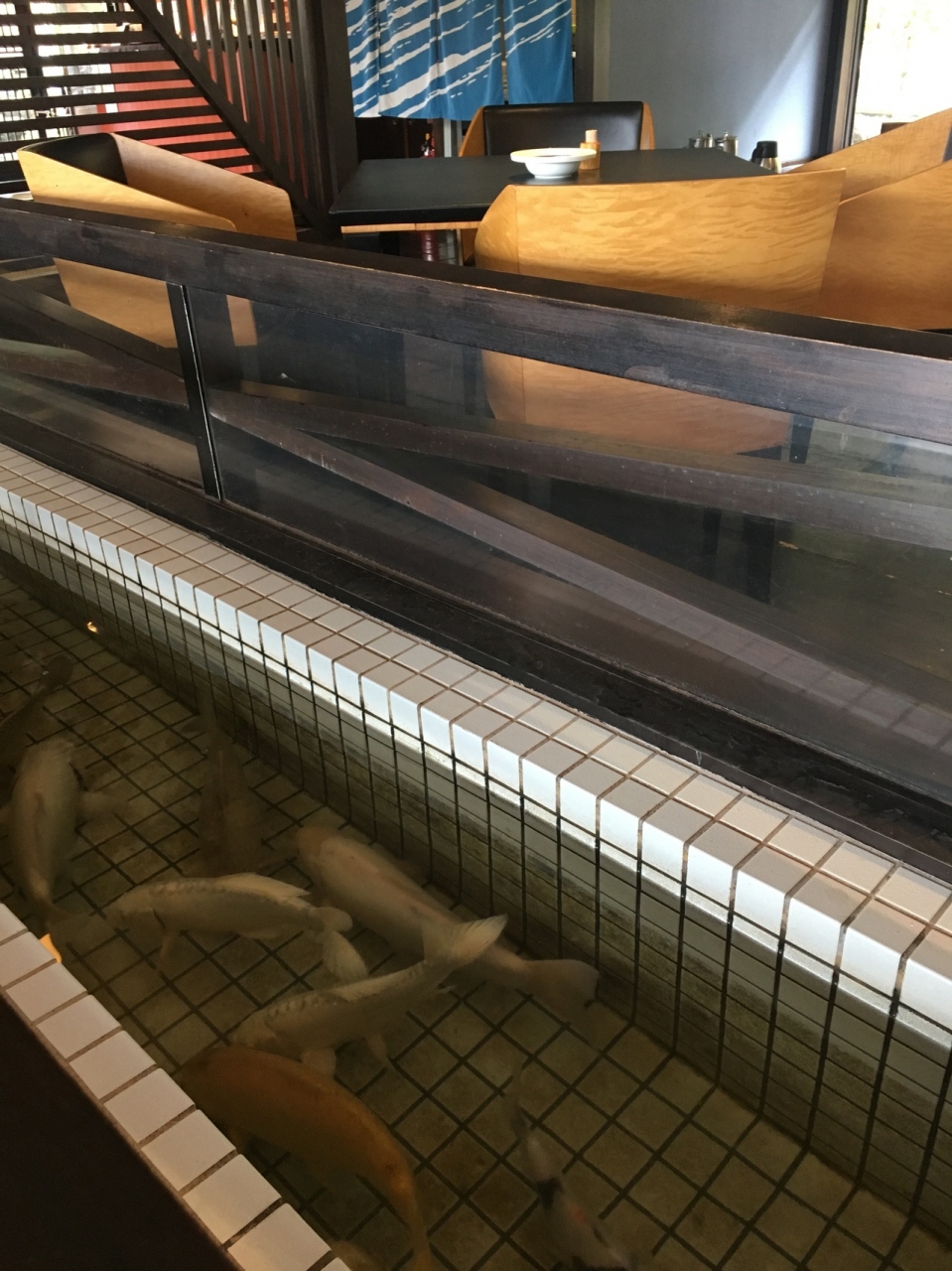 店内にもせせらぎがあり、席のすぐ横で大きな鯉がたくさん泳いでいます。