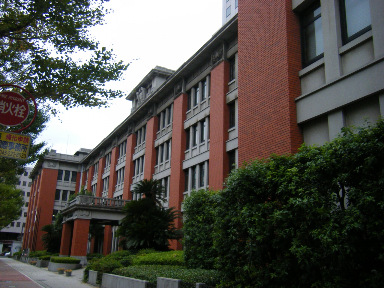 横浜第2合同庁舎は1926年に建てられた横浜生糸検査所で、現在では様々な省庁の関係部署が入るオフィスとして活用されています。煉瓦造りの外観は東京駅や台湾総統府のような美しい姿をしており、観るだけで価値のある建物だと思います。建物中央の上部にある、おそらく蛾だと思うのですが、レリーフが印象的でした。生糸検査所だったことから付けられたのでしょうね。なかなかユーモアがあって感心しました。