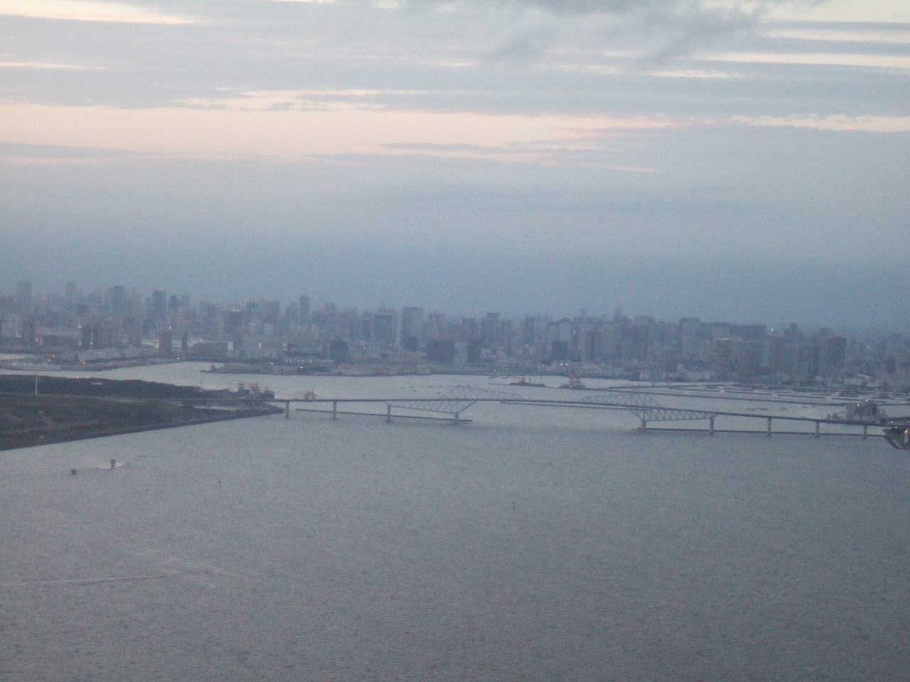東京港の埋め立て地にかかる大きな橋。大阪の南大橋のように目立つ色はしていませんが、とにかく形にインパクトがあります。羽田空港の第2ターミナルからも見えますが、機内からも良く見え、夜はライトアップがされていて綺麗です。