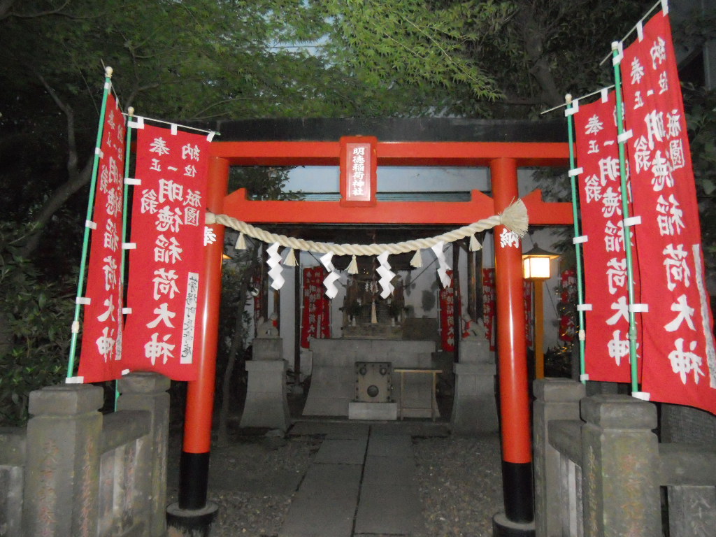 お参りを終えた後、立派な銀杏のすぐ近くに、こちらの「明徳稲荷神社」がありました。