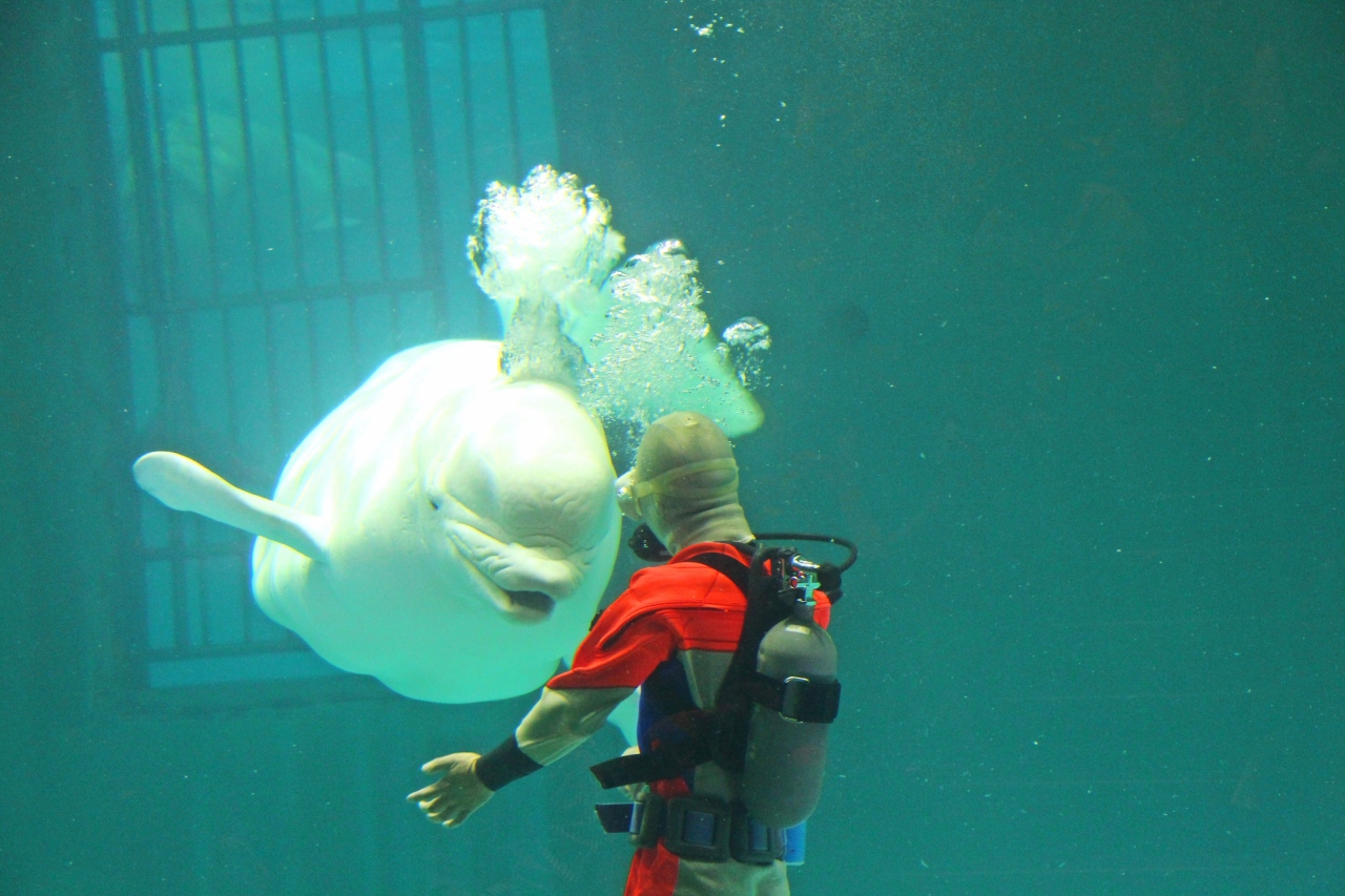 自由にプールの中を泳ぎまわるベルーガの姿や、人間の子供に興味を持ってアクリルガラスにブニっと顔を押しつけてくる姿は癒しそのものでした。