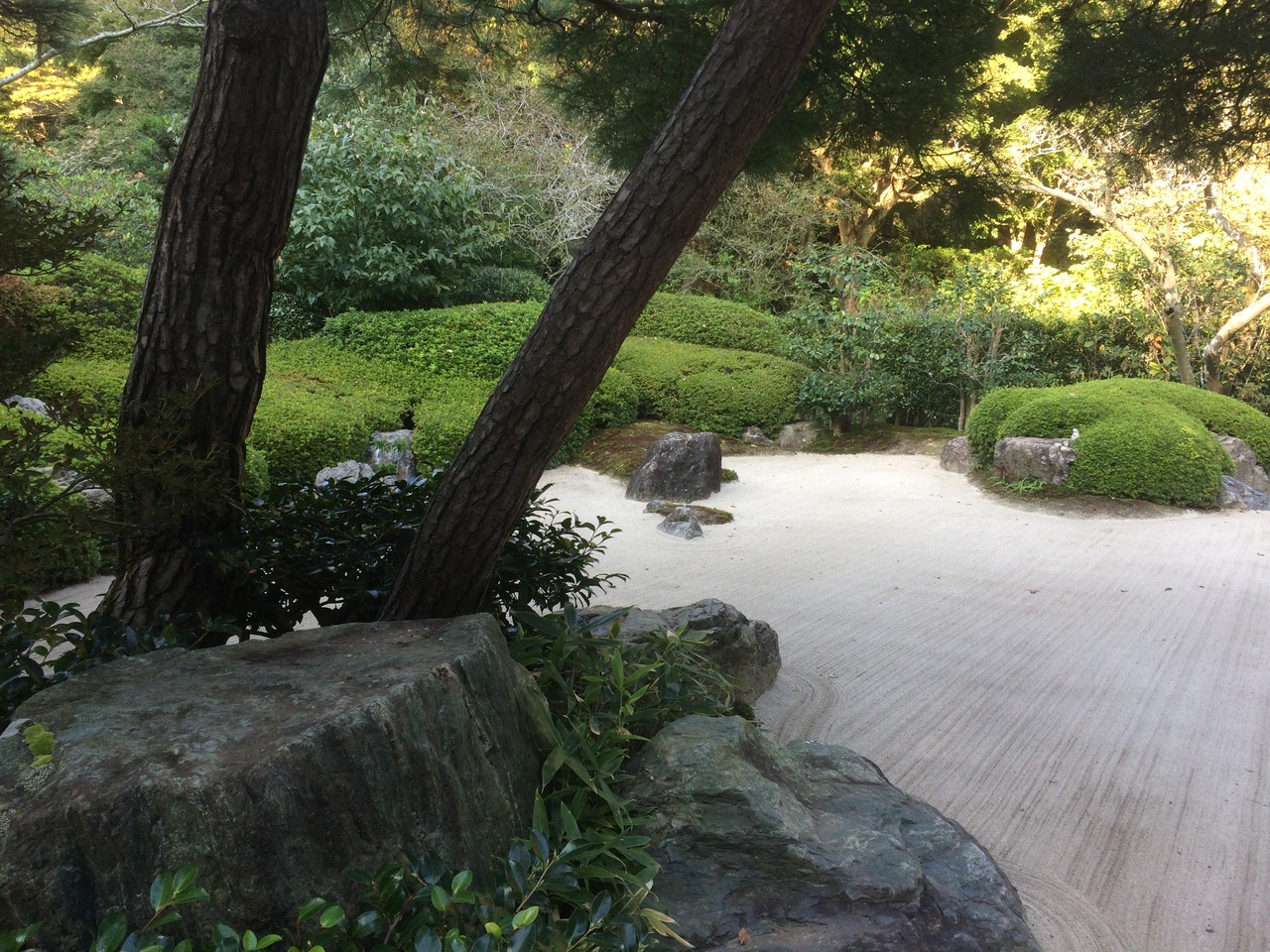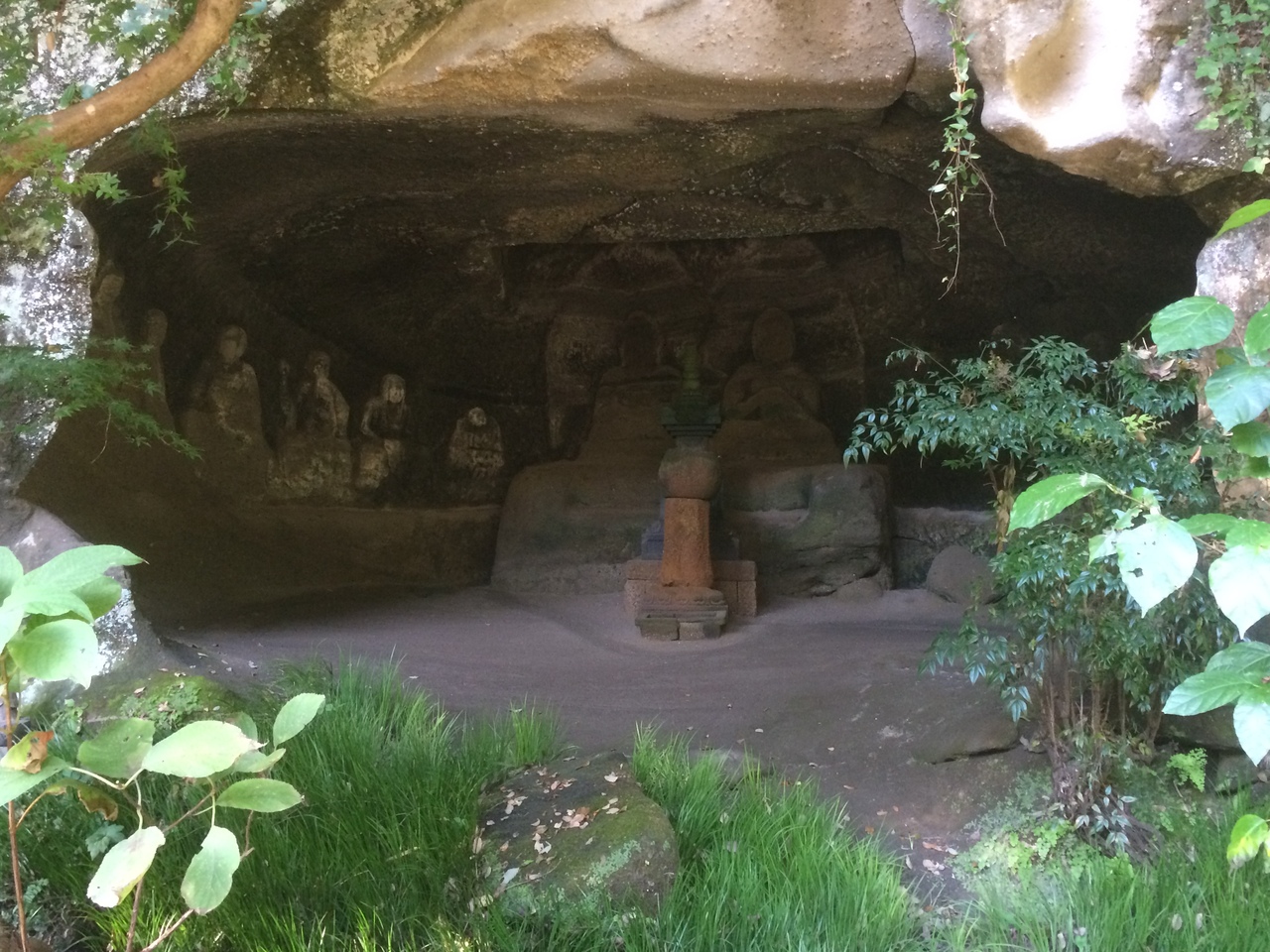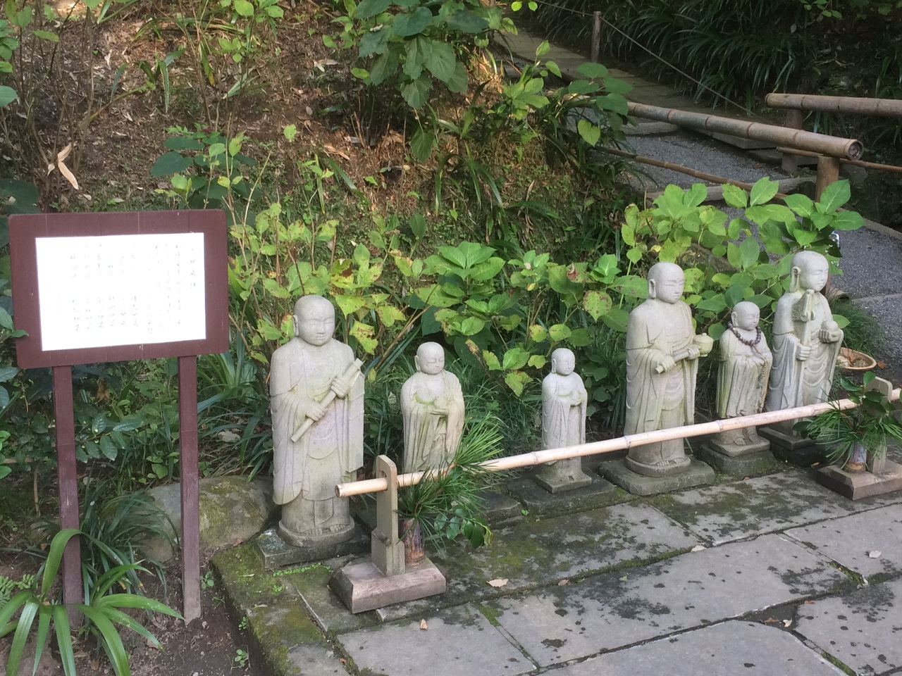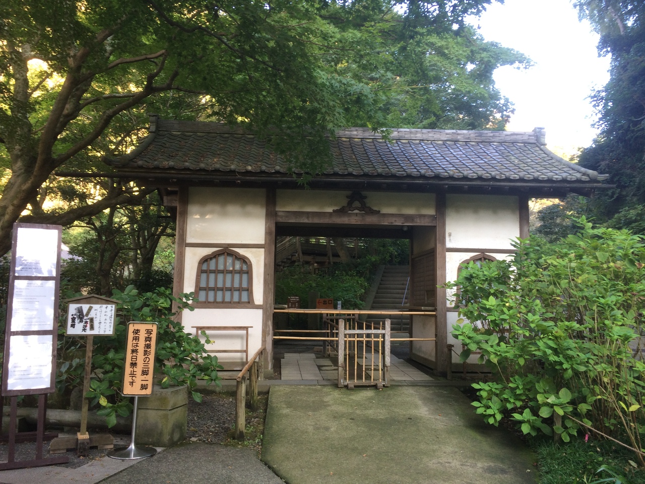 北鎌倉駅から徒歩15分ぐらいと程近く、紫陽花です有名とのことですが紫陽花が咲い咲いていなくても見事な境内でした。拝観料を払うところの小屋の雰囲気が良く、小屋を抜けると庭園というより植物園のような感じで茶室がありました。階段を登ると本堂、開山堂等があり、洞窟のようなやぐらがあり昔の仏像がいくつかあります。本堂の奥にある庭は、本堂を通して畳越しに見るとより良い景観でした。