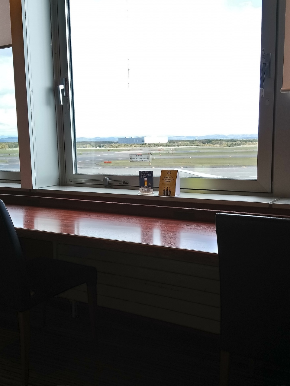 目の前に飛行機が見える抜群のロケーション。 Wi-Fiやワークスペース、電源もあるので快適です。