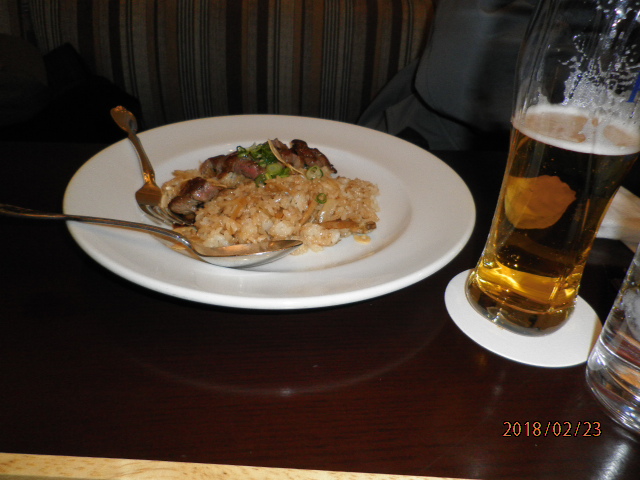 高知新阪急ホテル内にあるカフェレストランです。ここで、この日の夕食をとることにし、ビーフステーキピラフと生ビールを注文しました。味は良かったとおもいます。この店で食事をしている人も多く、店内はかなりにぎやかな感じがしました。また、ケーキなどのスイーツも多くの種類が売られ、買い求めている人もいました。