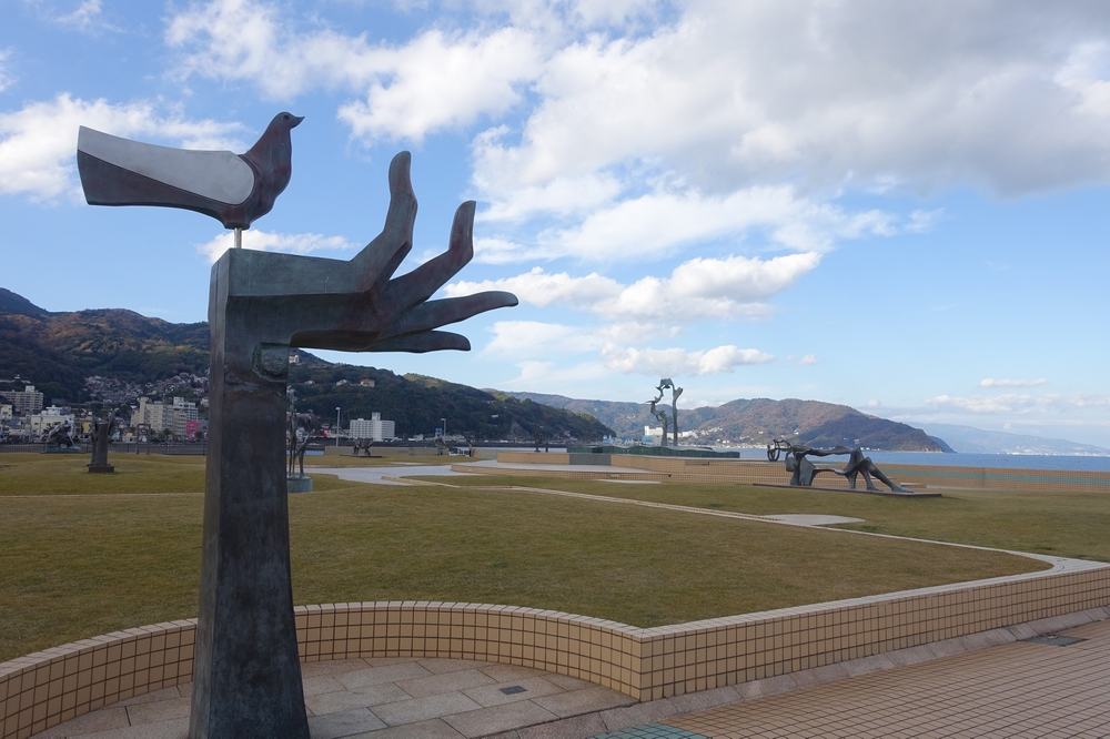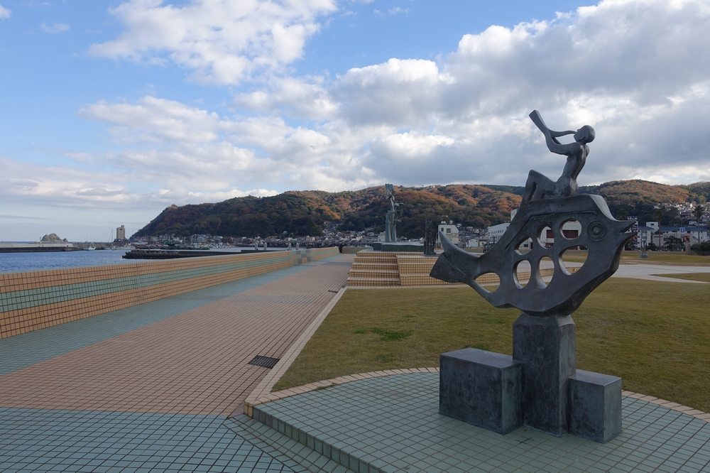 海に面しておりロケーションは良好。潮風を感じながら地元の彫刻家、重岡健治氏の彫刻も見られる公園です。松川の河口部にあるので、街散策の途中に寄るのもいいんじゃないでしょうか。冬だからか人は少なくどことなく寂しげでした。暖かい季節だとのんびり過ごせて良さそうです。