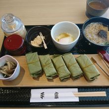 ランチにて利用いたしました。奈良セットにしたので、柿の葉ずし、三輪そうめん、温泉卵、わらび餅がセットになっておりました。柿の葉ずしは、サバが二つ、鮭、鯛、大根となっておりました。テイクアウトもできますが、おいしくいただけました。
