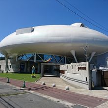 石巻マンガロードに立つ石ノ森キャラクター達を見ながら旧北上川方向に向かうと中州に近未来的?マンガチック?な建物が見えてきます。…どうせならギルモア研究所にすれば良かったのに(^^;;