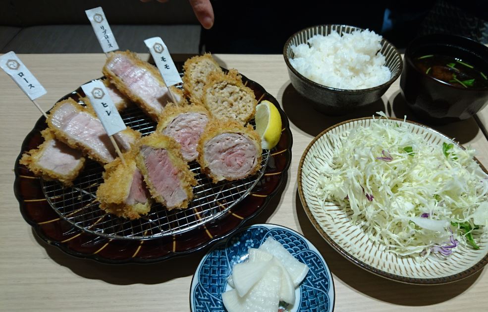 鹿児島にも店舗がある一頭揚げを高らかに謳う一頭揚げとんかつ亀かわ巣鴨本店に行きました。最近はテレビの取材もあったみたいです。一頭揚げはメンチカツと様々な部位を2口サイズに揚げています。ドレッシングで食べるキャベツのお替り自由はうれしいです。