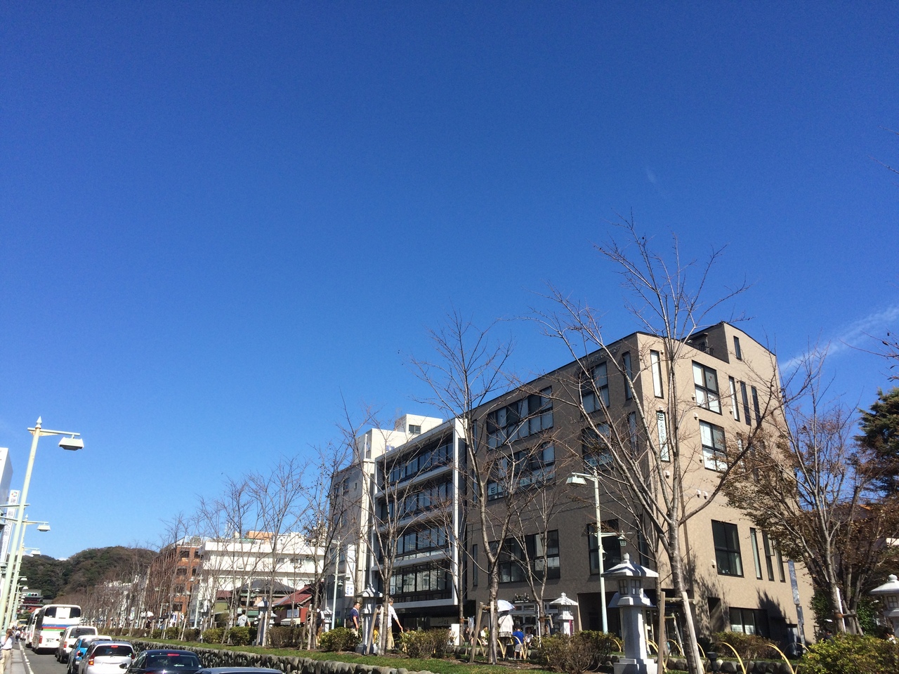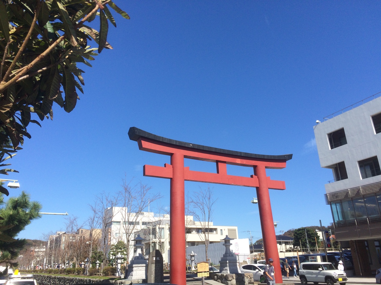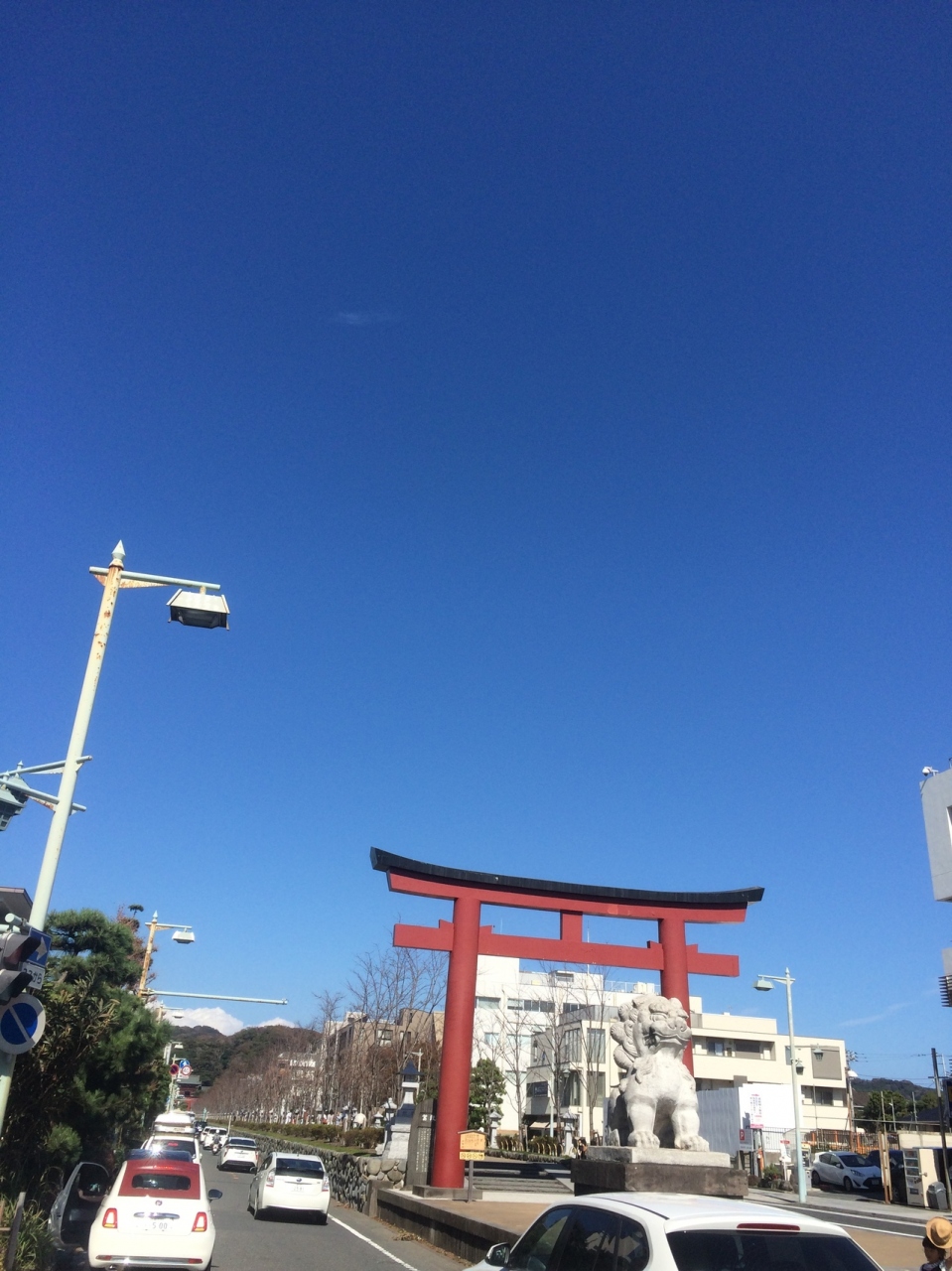 鶴岡八幡宮の前付近から一直線には道路が伸びています。道路の中央は人が通れる道があり鳥居もありました。その横は左右は車道で、その横は商店街が連なり土産屋もたくさんありました。道が広いため、ゆったりと歩くことが出来ました。