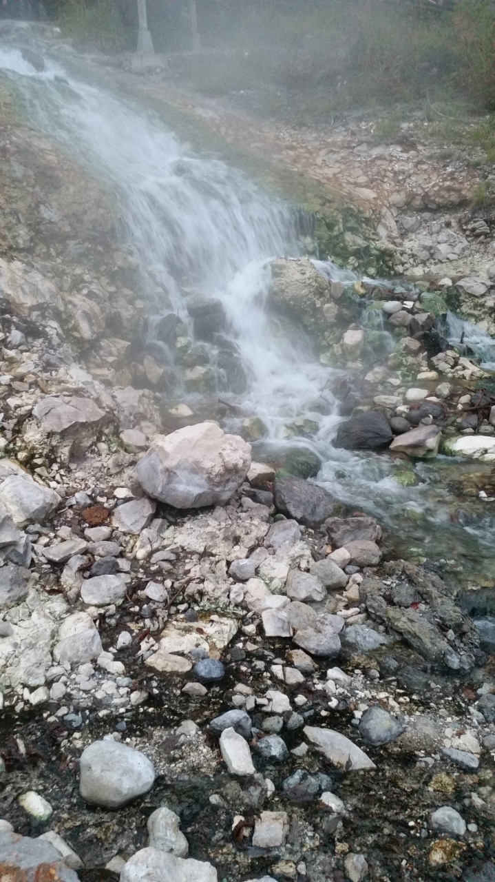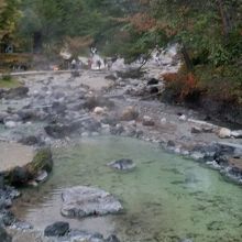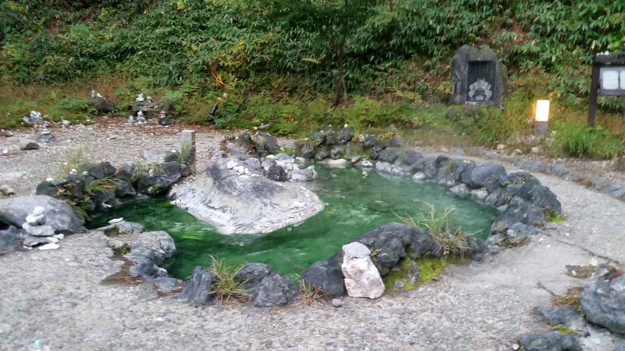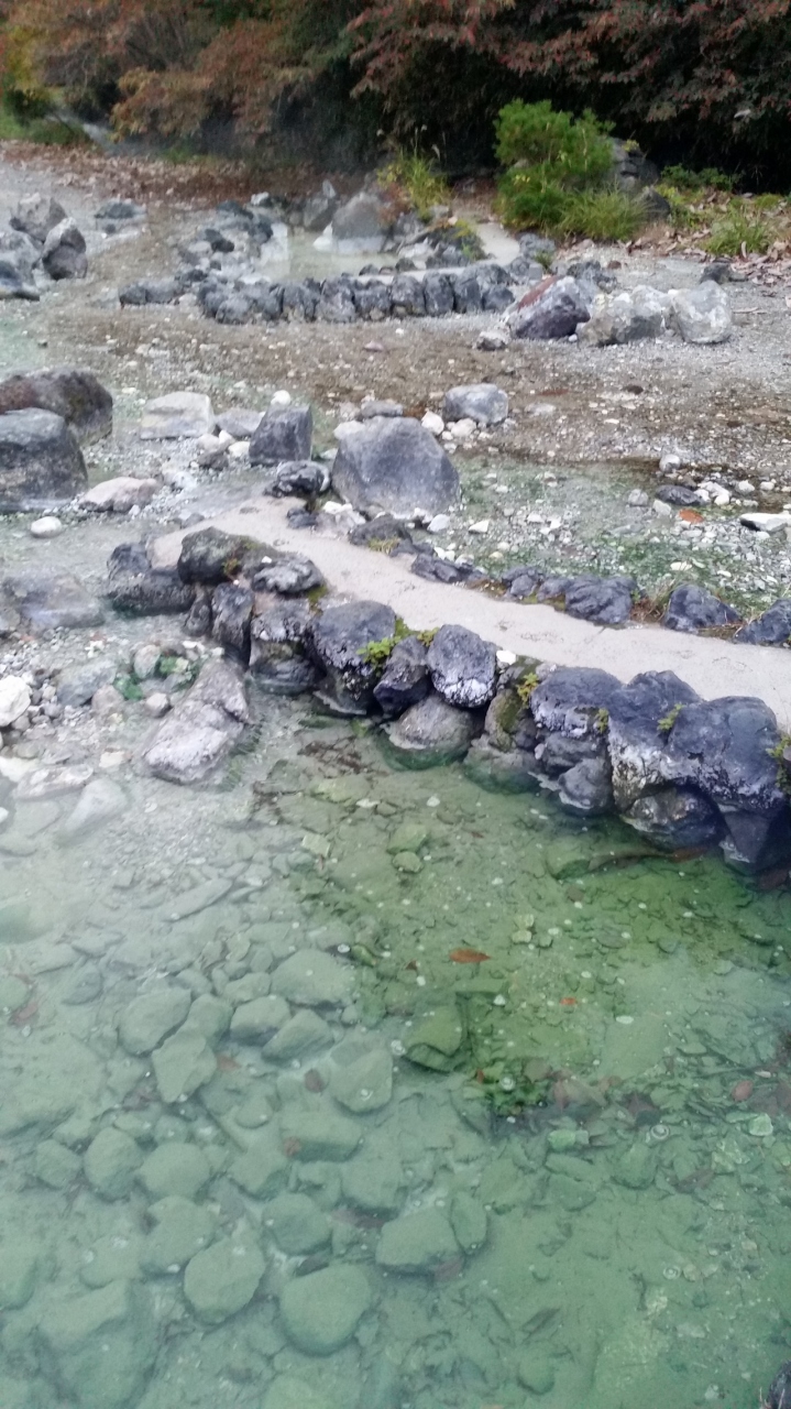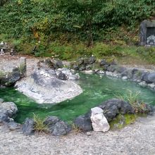公園といっても遊具があるわけでもなく、足湯があって湧き出でる温泉が流れる川沿いの散策場所です。