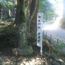 平泉中尊寺に向かう参道途中にある、弁慶堂です。鬱蒼とした木々の中にあり、弁慶の木造が祀られています。