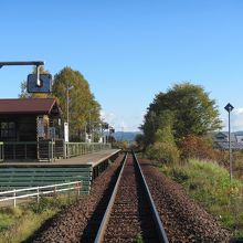 ただ相内駅に比べて、愛し野駅は単線の片側ホームの無人駅で、簡素な待合室小屋を併設し、駐輪場があるのみです。