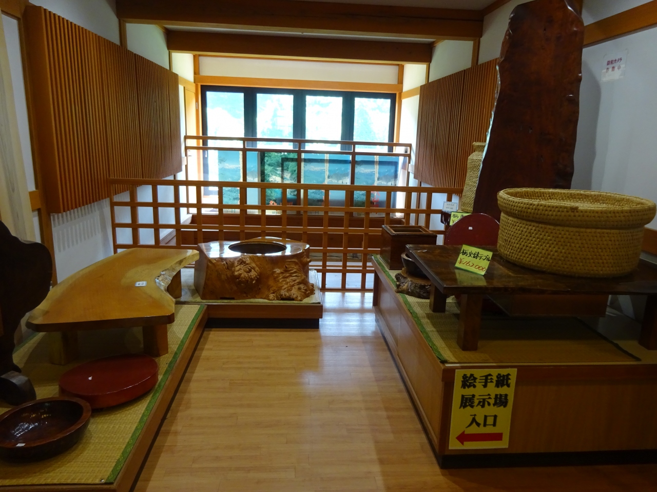 「物産館またたび」には野菜や山菜、そばなどそ信州らしい特産品が多く並んでいます。また2階では立派な木工品、工芸品が販売されていました。