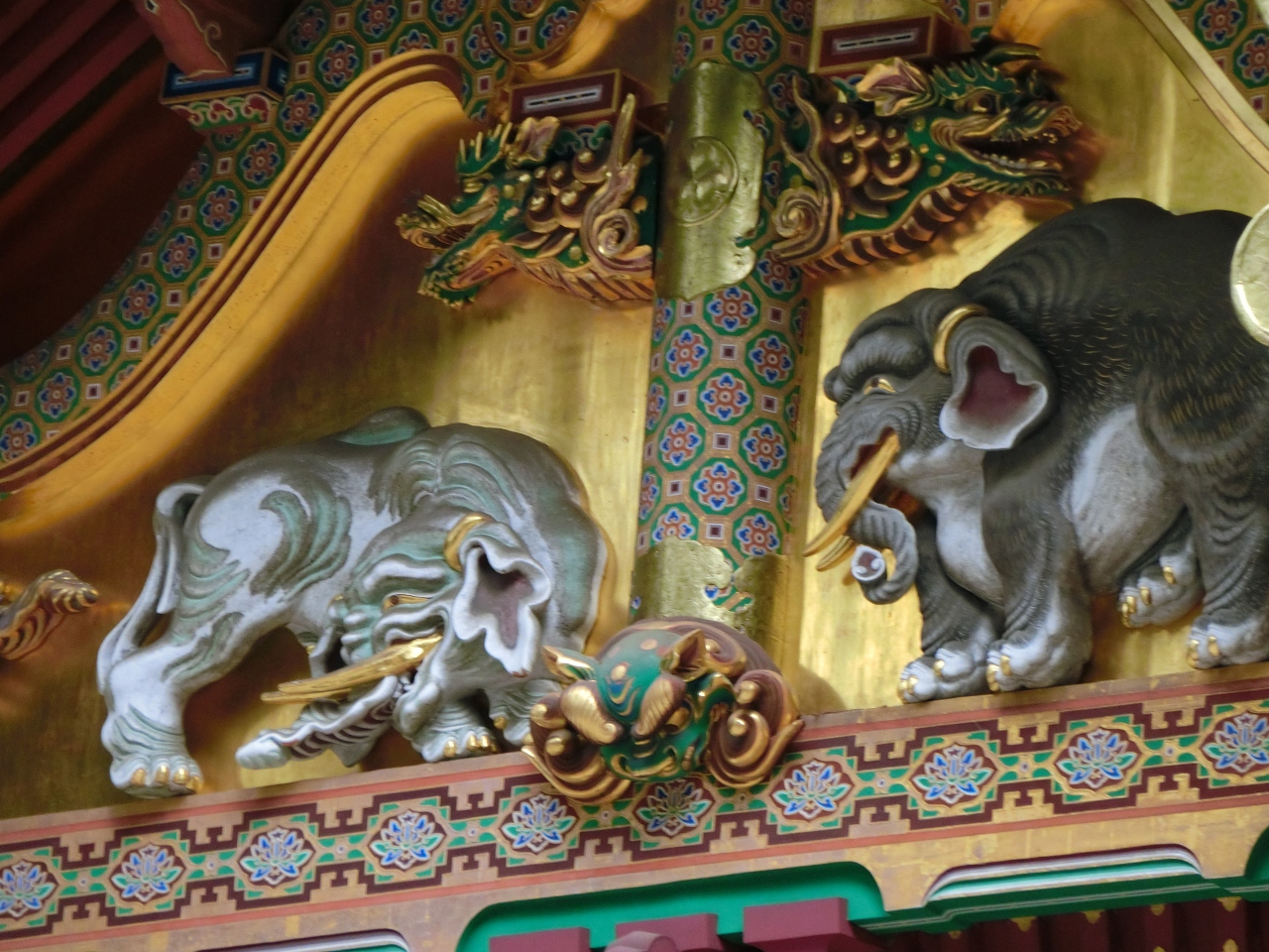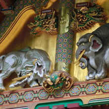 が、上神庫には想像上の象を描いた彫刻が施されています。この象、しっぽが3つに分かれていたりしてなかなか面白いので、お見逃しなく。